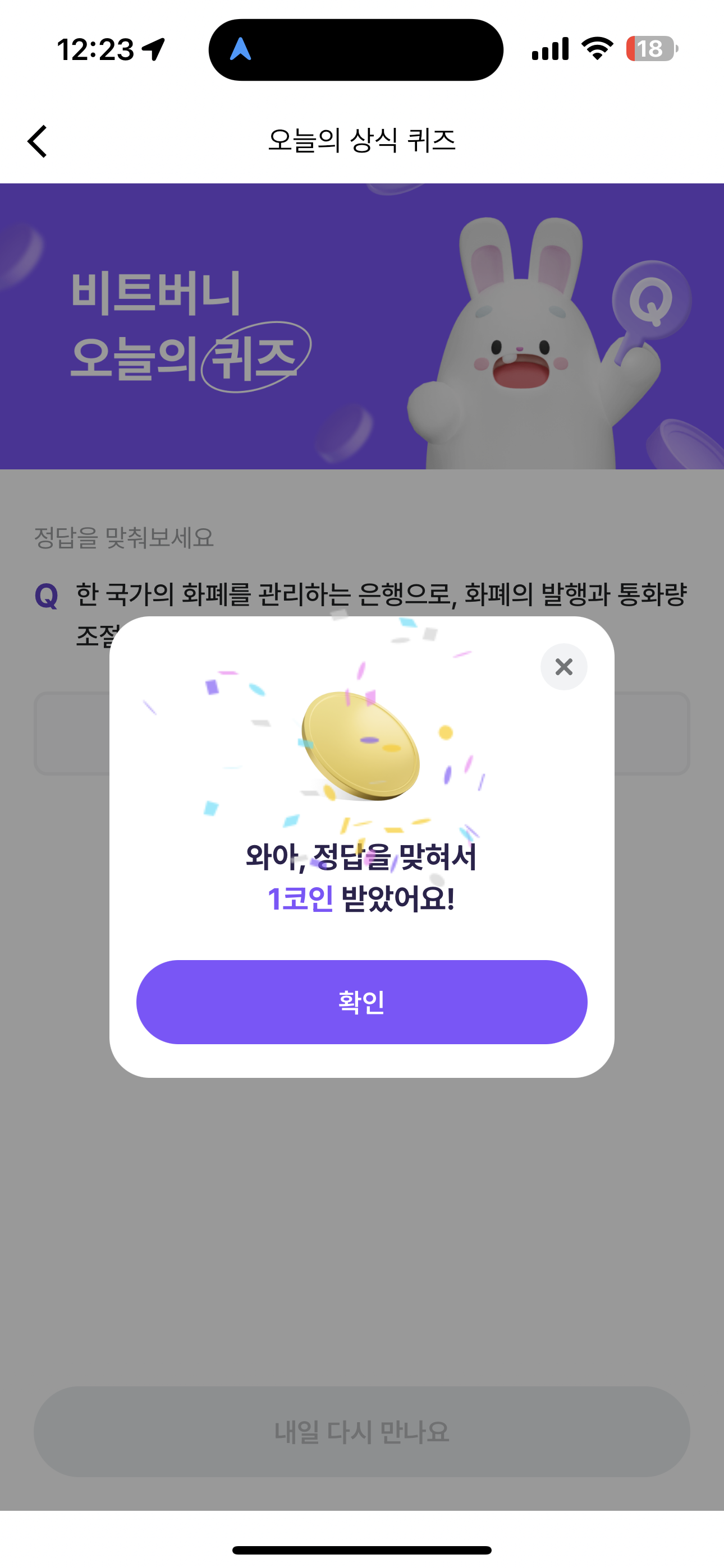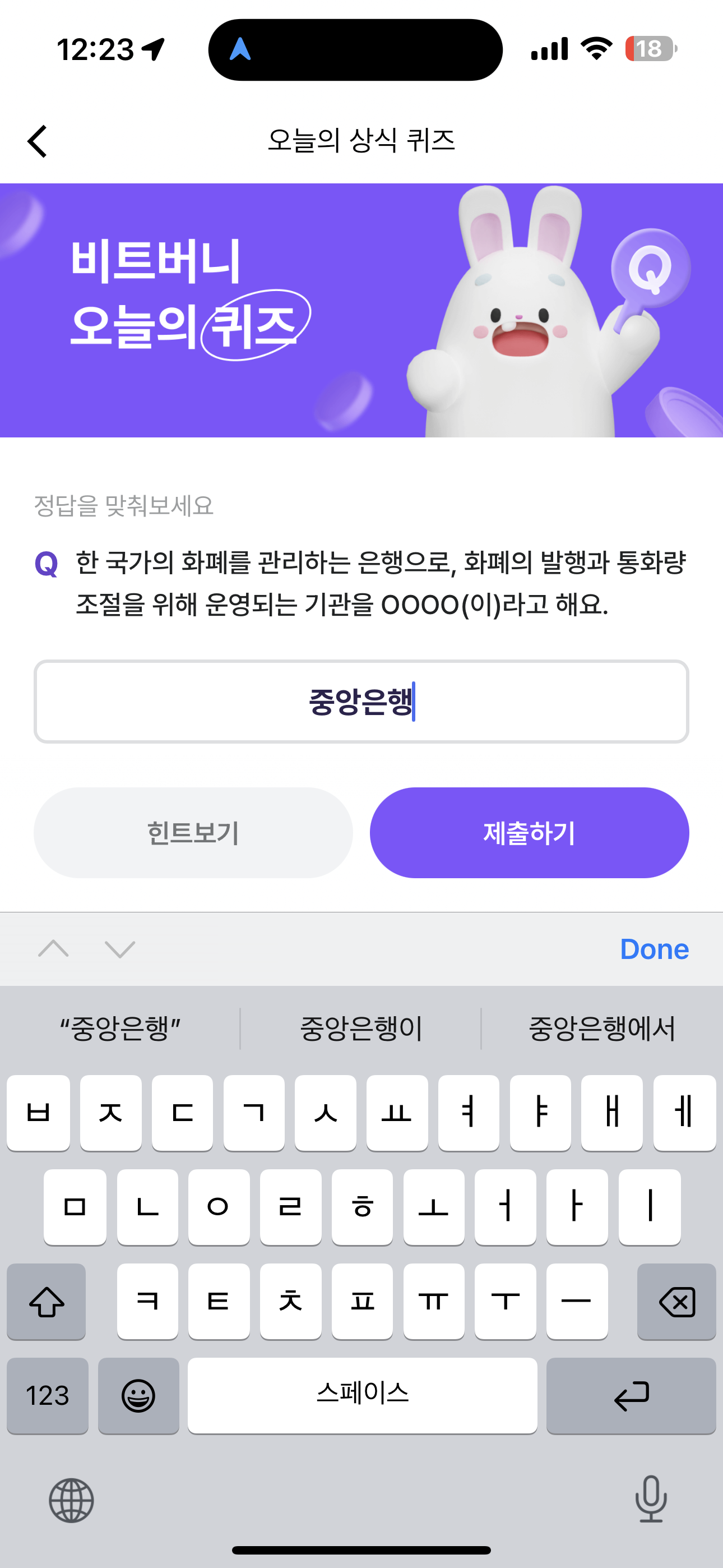 비트버니 오늘의 퀴즈 정답은 중앙은행 입니다