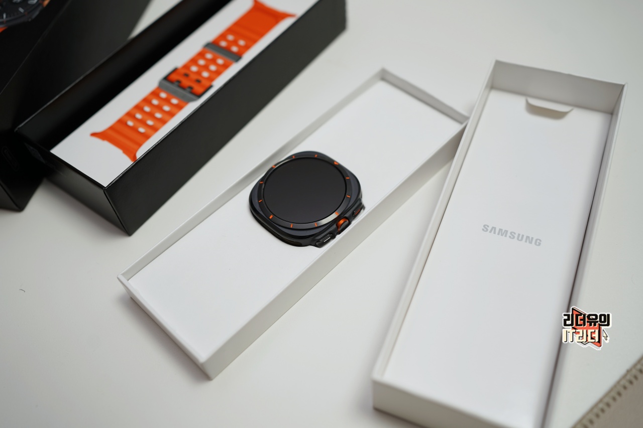 갤럭시워치 울트라가 들어있는 모습입니다. 상자 위쪽에 보면 작은 상자가 달려 있습니다. 여기에는 충전기가 들어 있습니다.