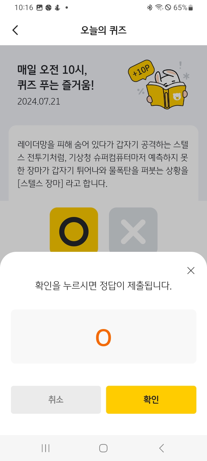 KB pay 오늘의 퀴즈 정답은 O 입니다