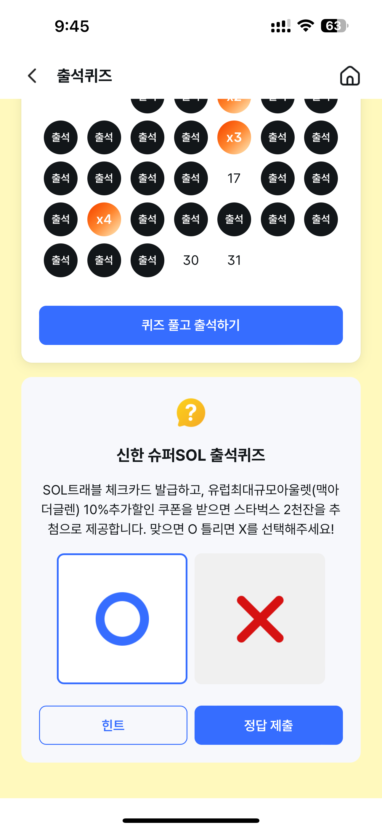 신한 슈퍼SOL 출석퀴즈 정답은 O 입니다