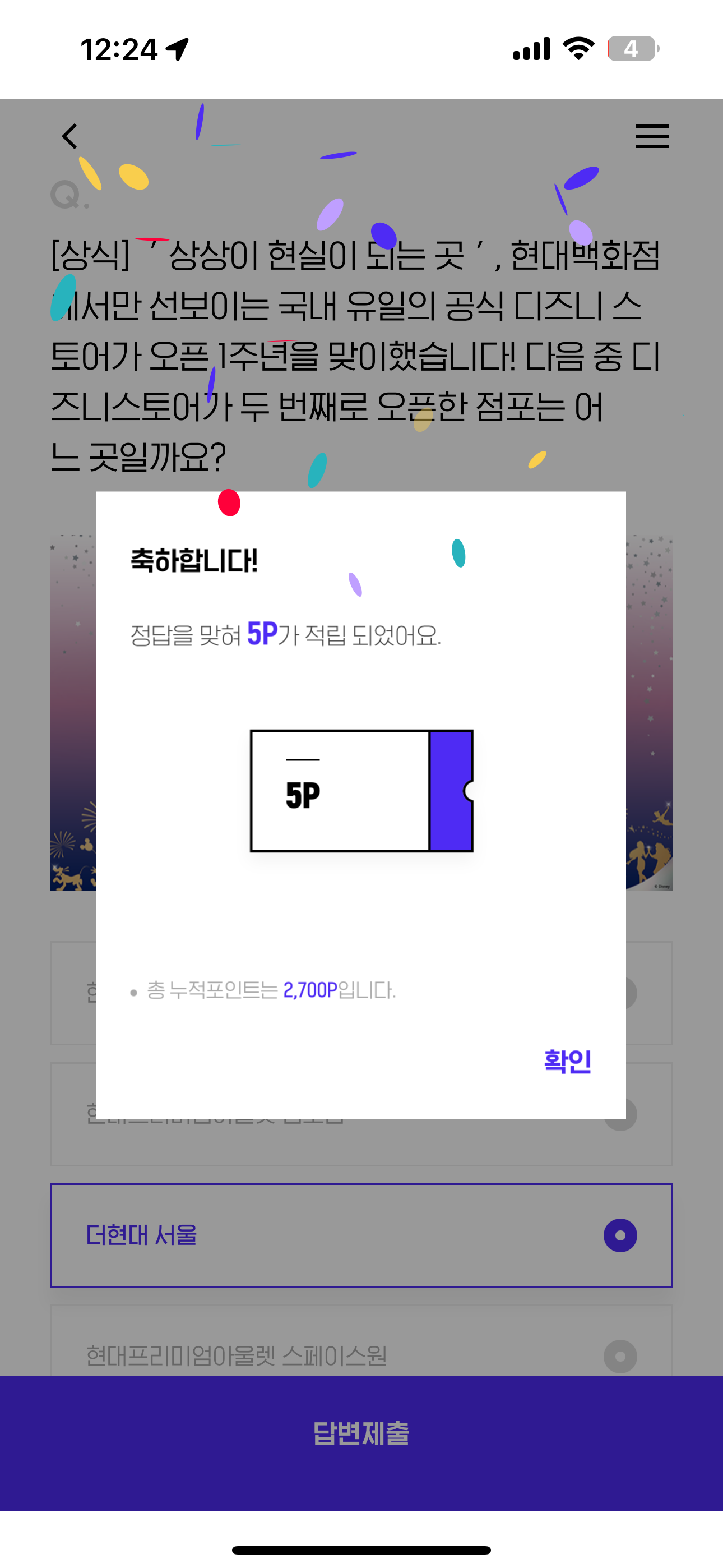 H포인트 퀴즈 정답은 더현대 서울 입니다