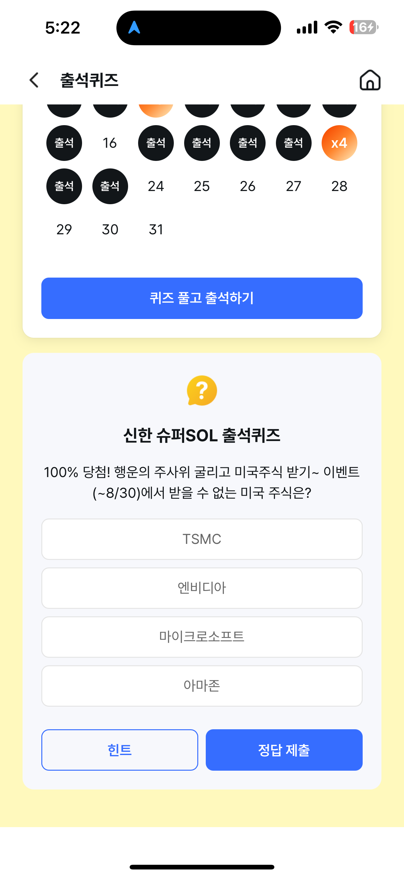 신한 슈퍼SOL 출석퀴즈 정답은 아마존 입니다