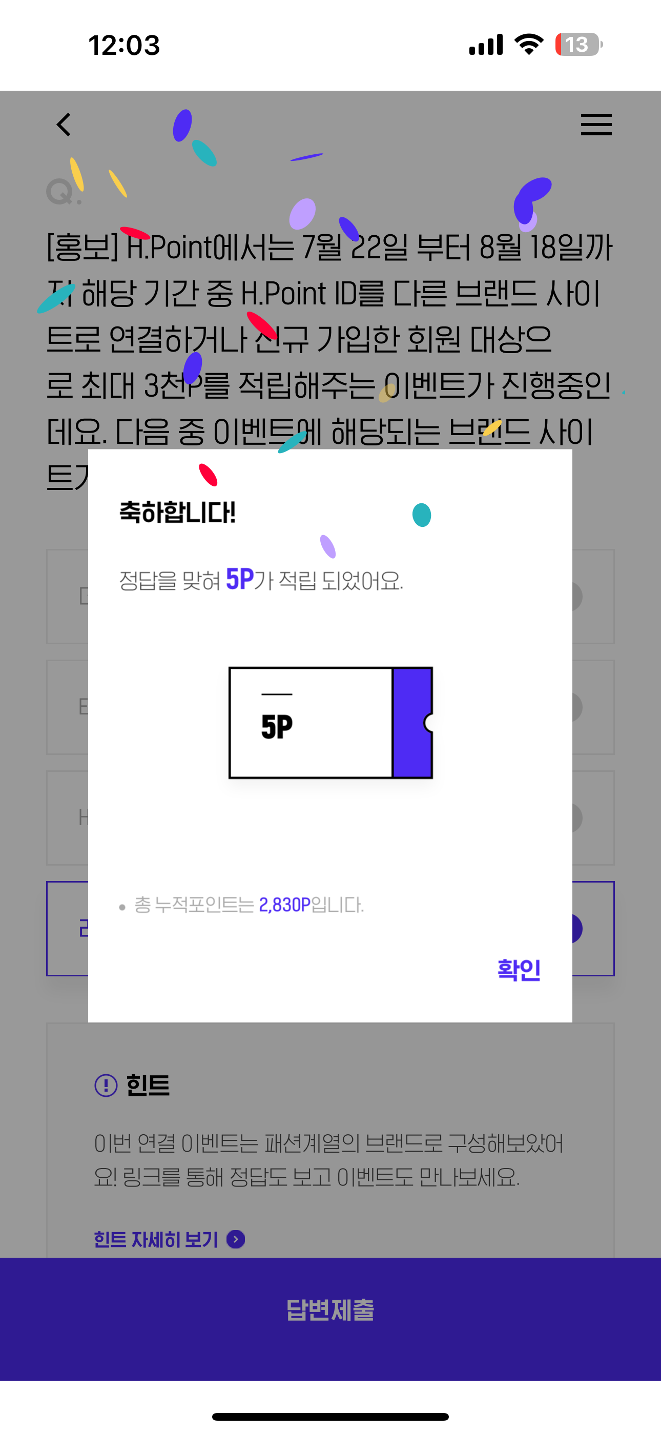 H포인트 퀴즈 7월 27일 문제입니다