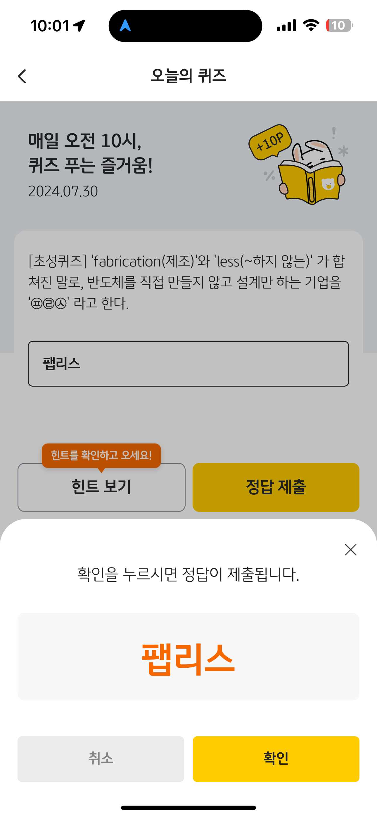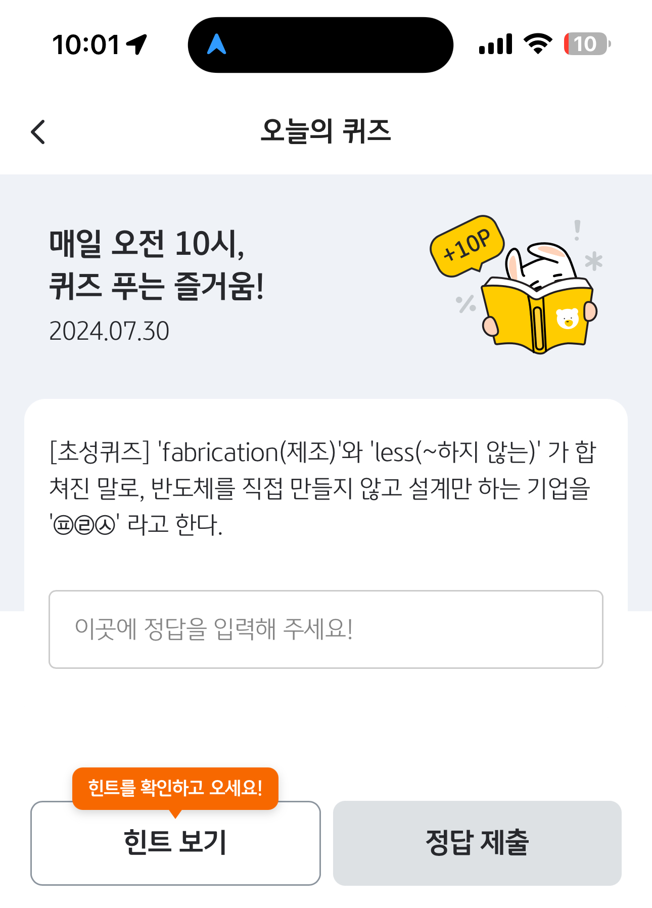 KB pay 오늘의 퀴즈 정답은 팹리스 입니다