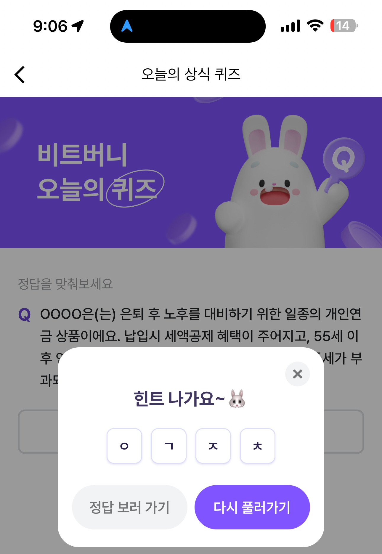 비트버니 오늘의 퀴즈 정답은 연금저축 입니다