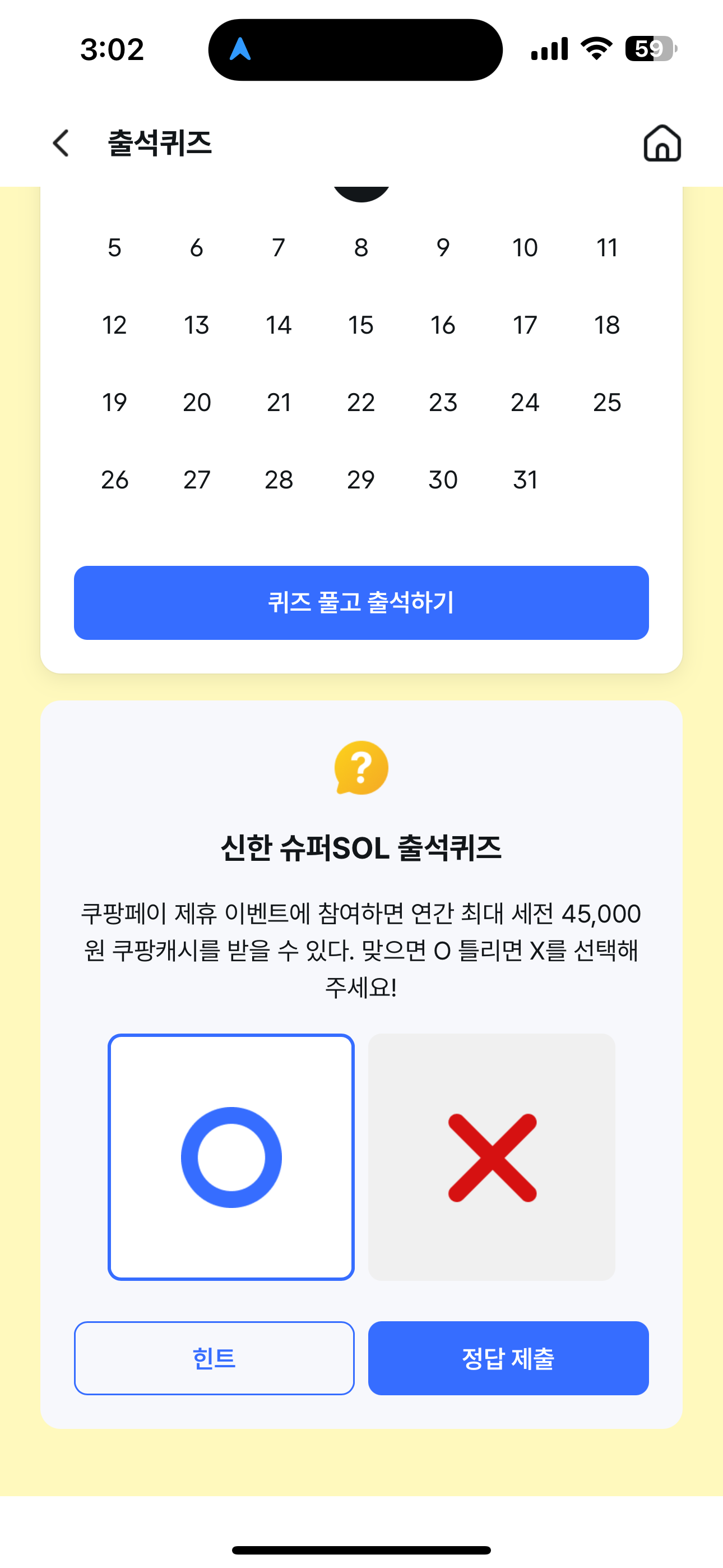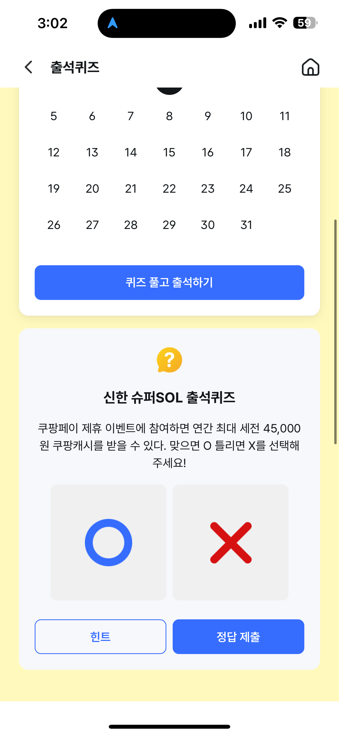 신한 슈퍼SOL 출석퀴즈 정답은 O 입니다