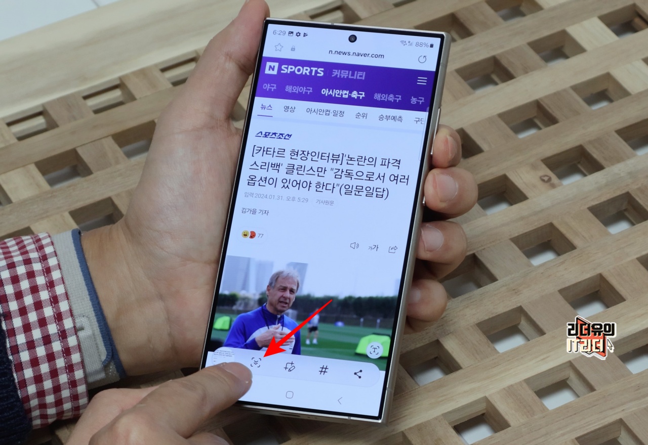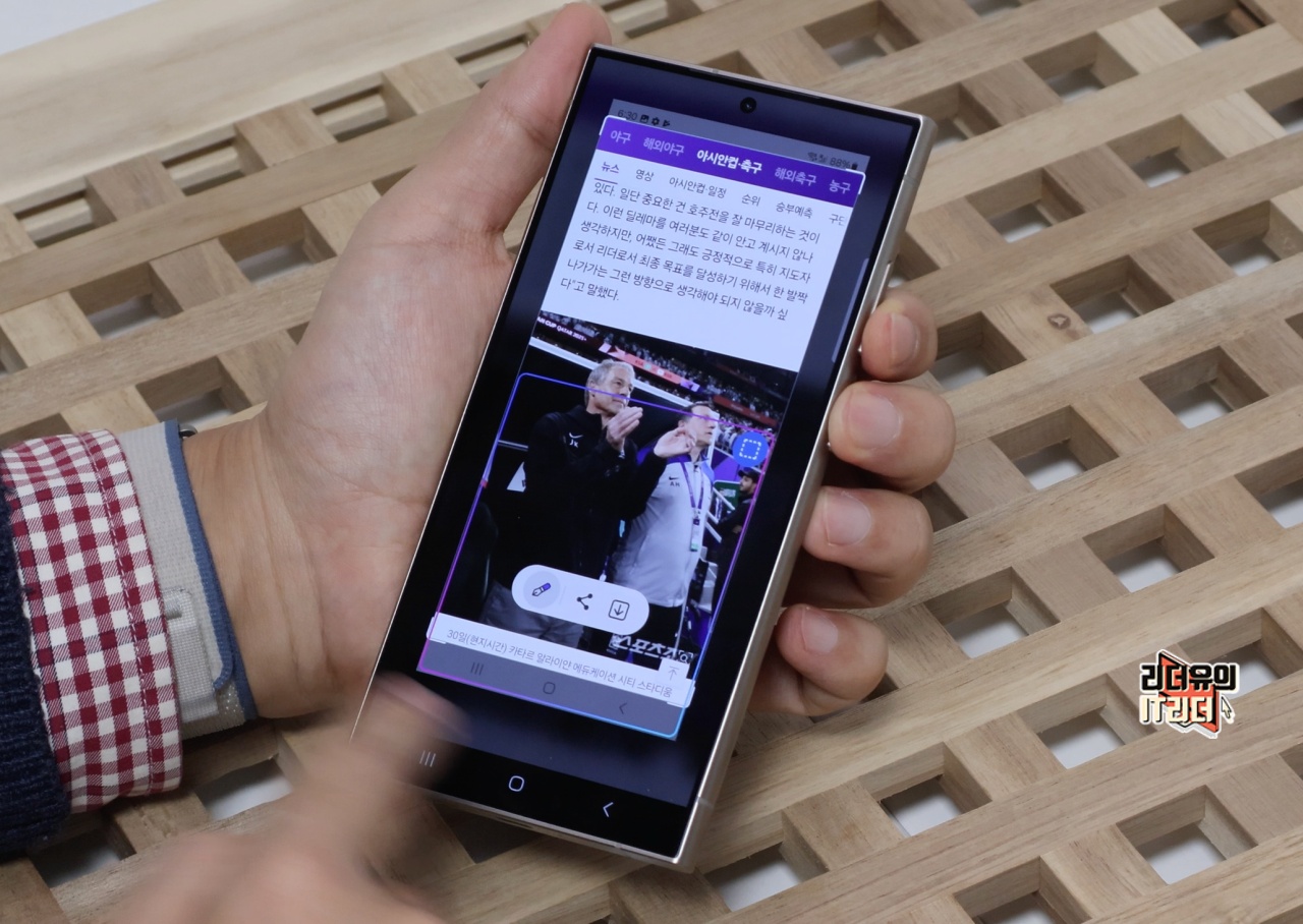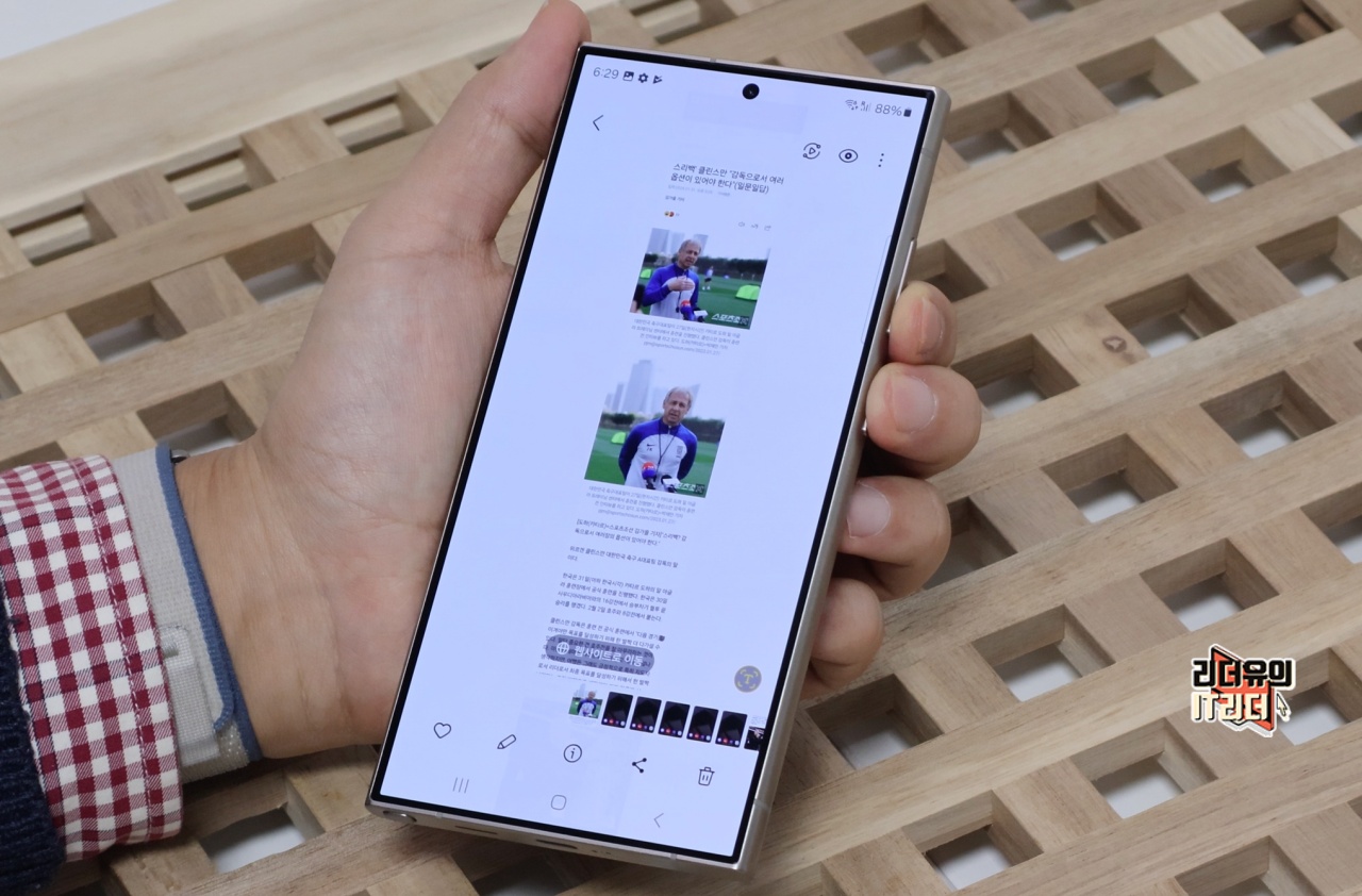삼성 갤럭시S24 울트라 화면 캡처 방식으로 화면 좌우 끝에서 쓸어보세요. 그럼 화면 캡처가 되는 걸 확인할 수 있습니다. 삼성 갤럭시 스마트폰에서 되는 독특한 방식인데요. 굉장히 편한 화면 캡처 방식입니다.