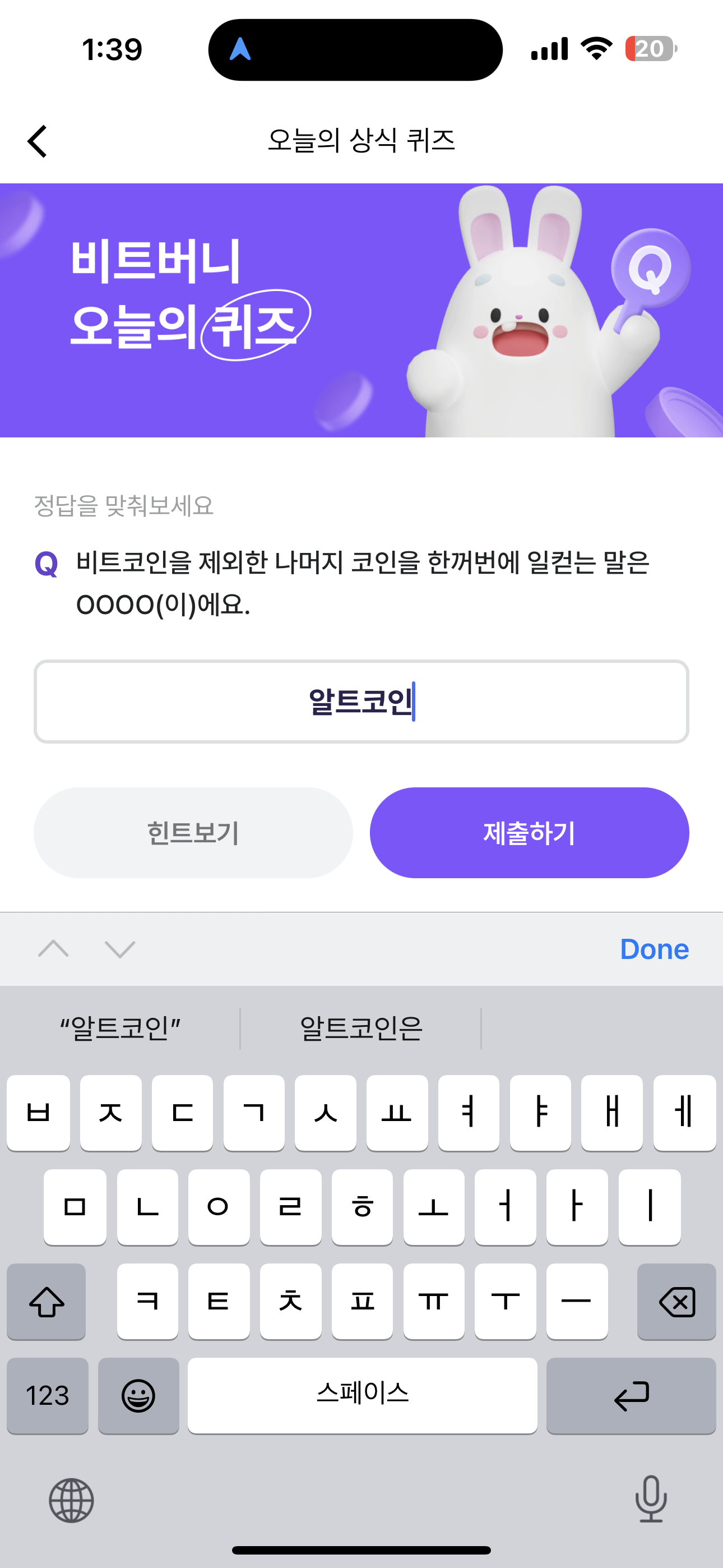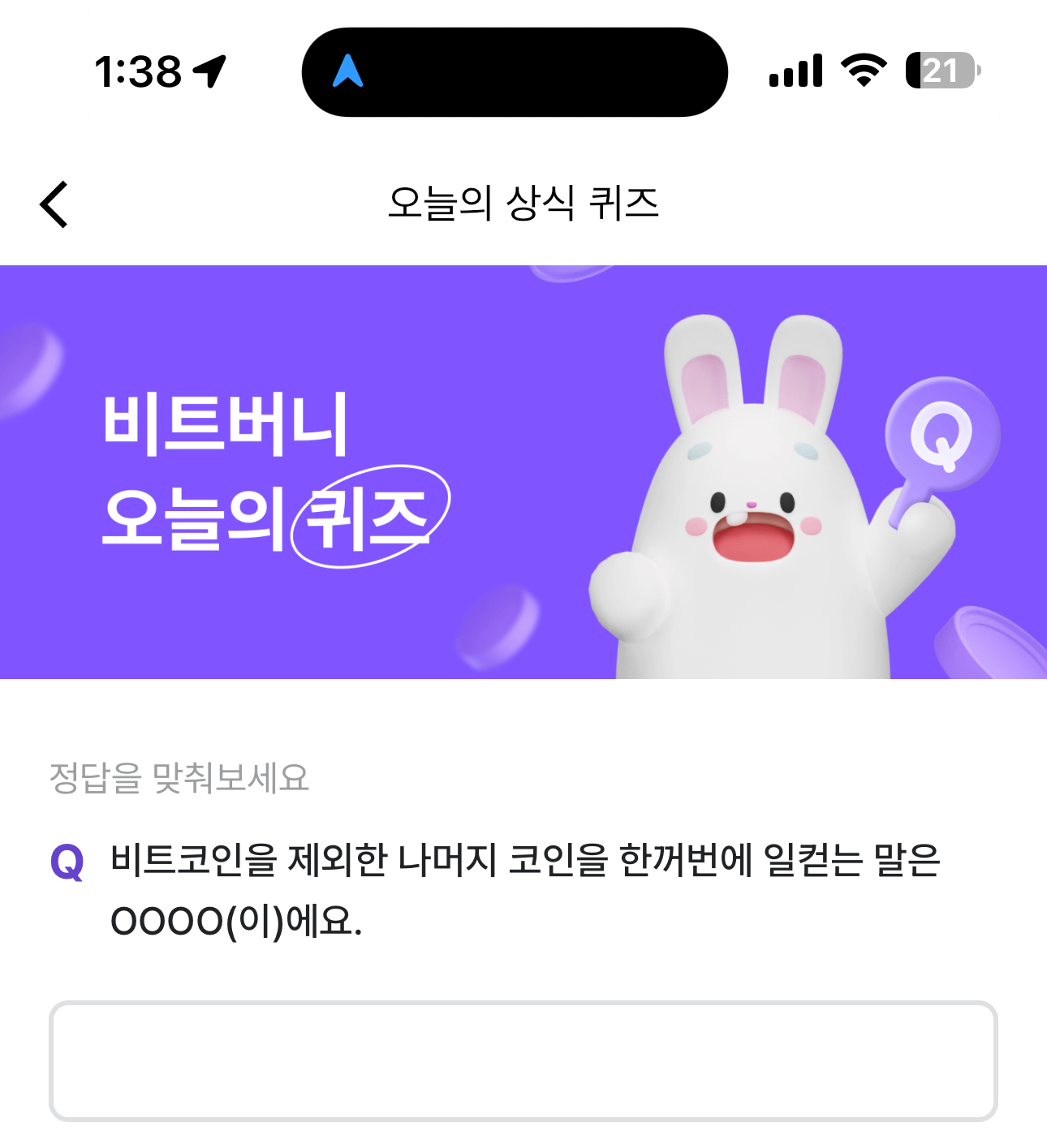 비트버니 오늘의 퀴즈 초성 힌트는 ㅇㅌㅋㅇ 입니다
