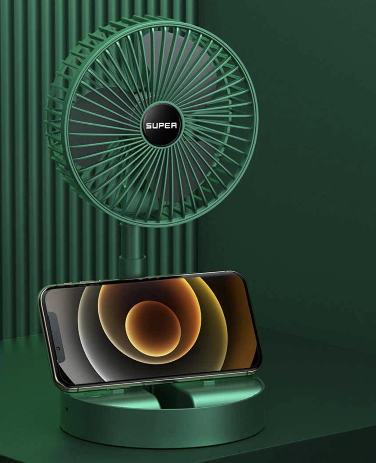 탁상용 선풍기로 사용시 스마트폰 거치대로 사용도 가능한 매력도 갖추고 있습니다. 가볍게 책상위에서 센스있게 사용할 수 있는 접이식 무선 선풍기 추천 모델입니다.