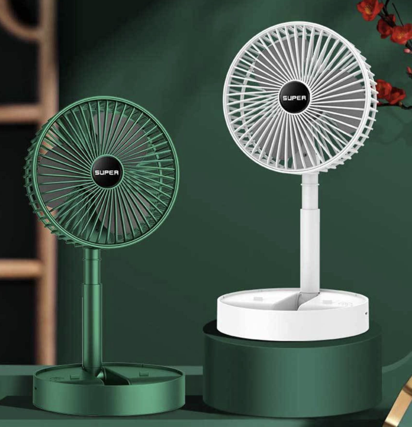 접이식 무선 선풍기 색상은 2가지 입니다. 그린과 화이트 색상!