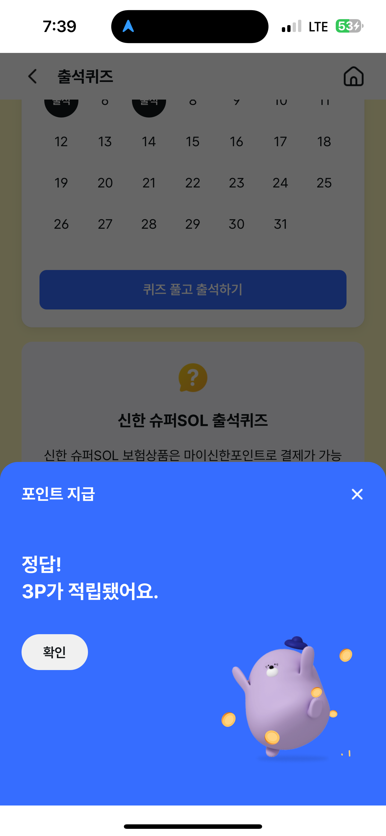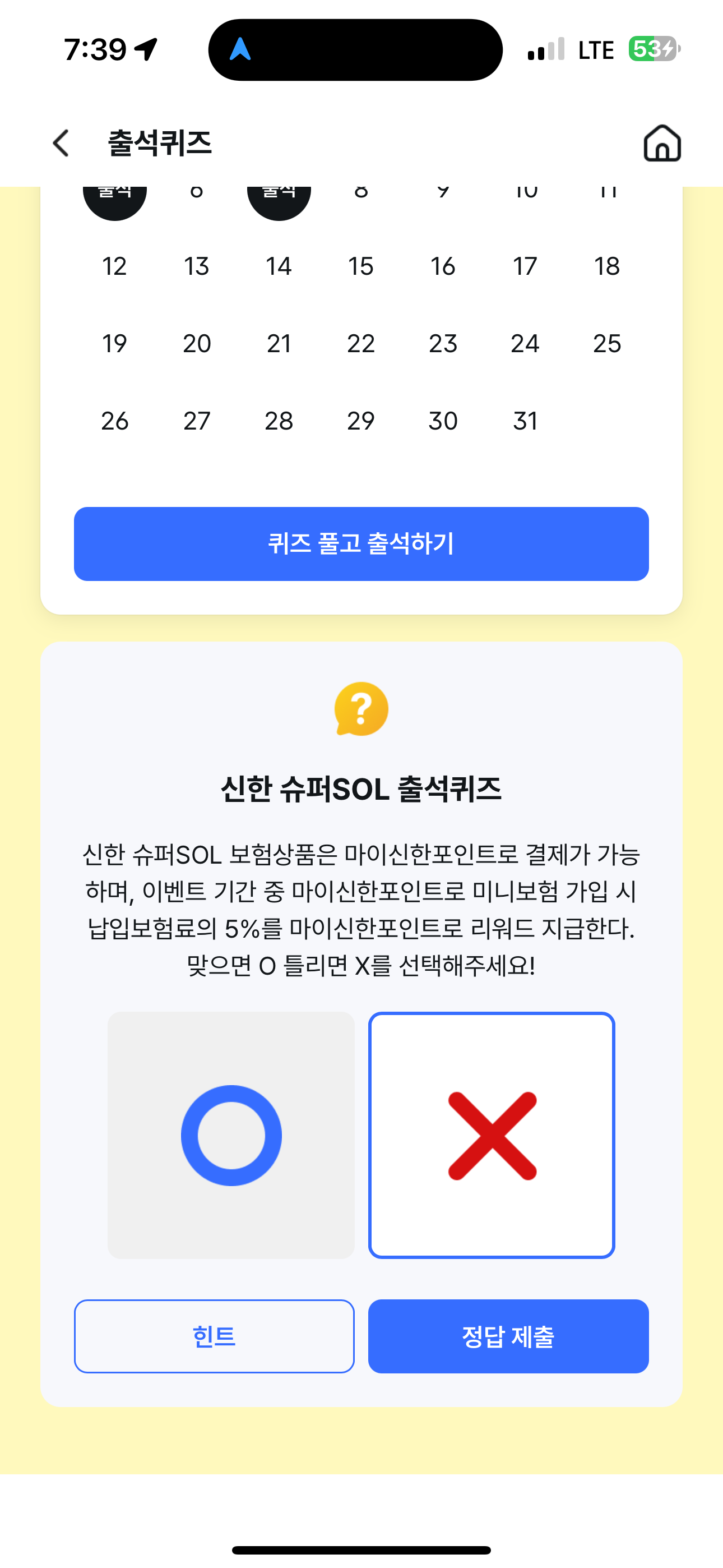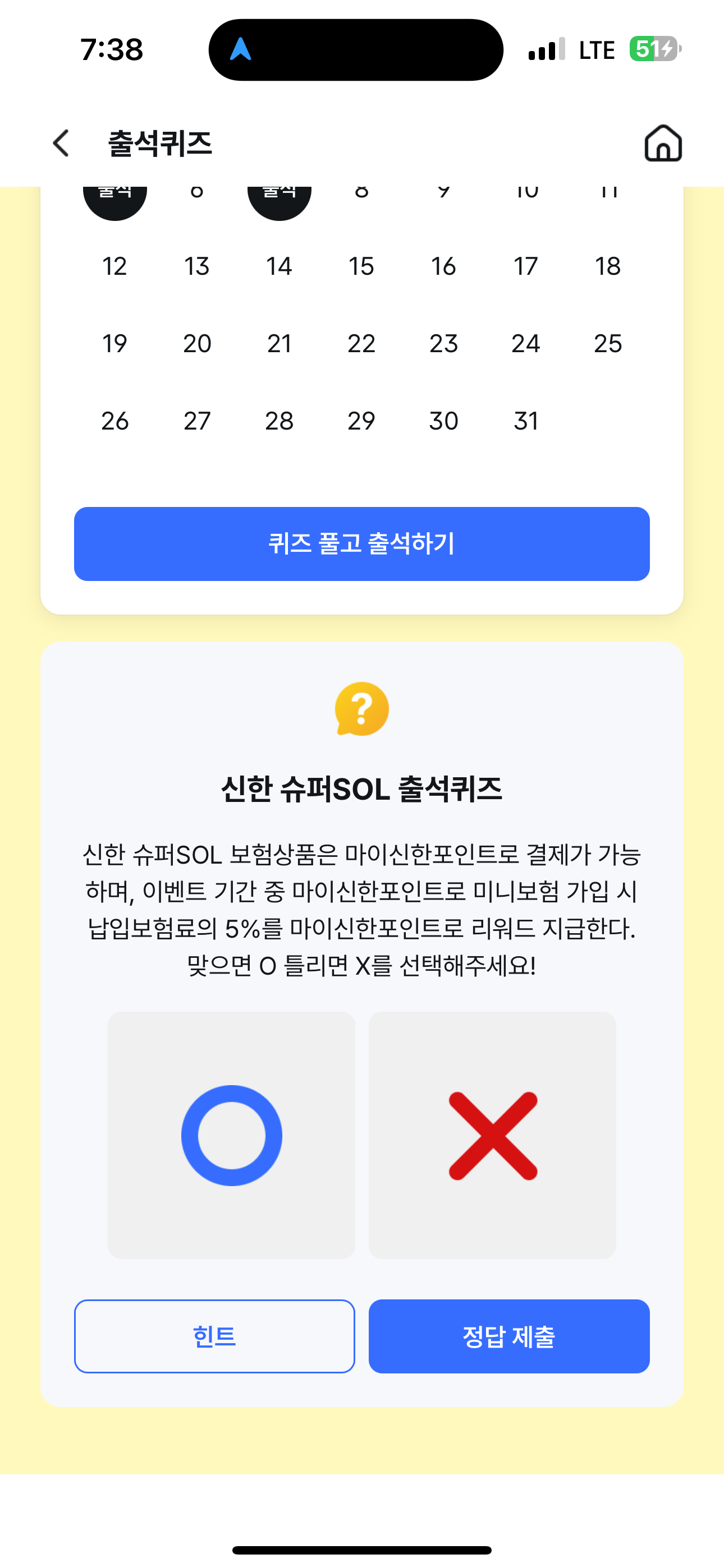 신한 슈퍼SOL 출석퀴즈 정답은 X 입니다
