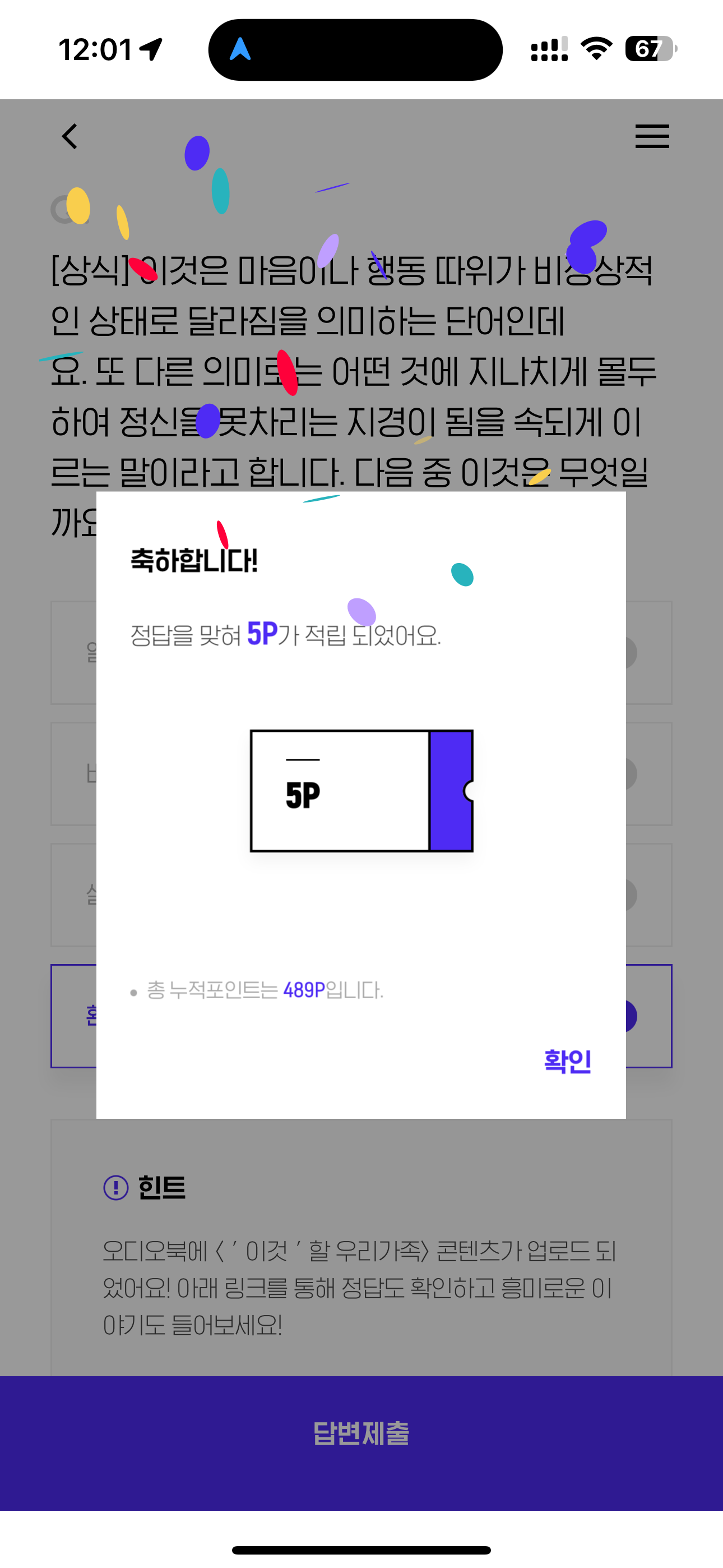 H포인트 퀴즈 정답은 환장 입니다