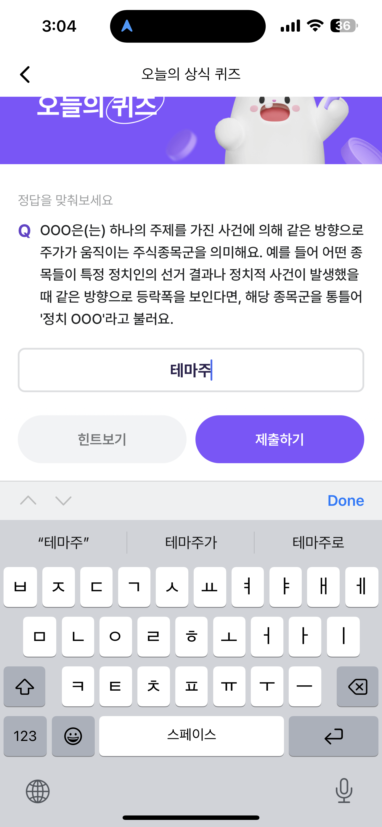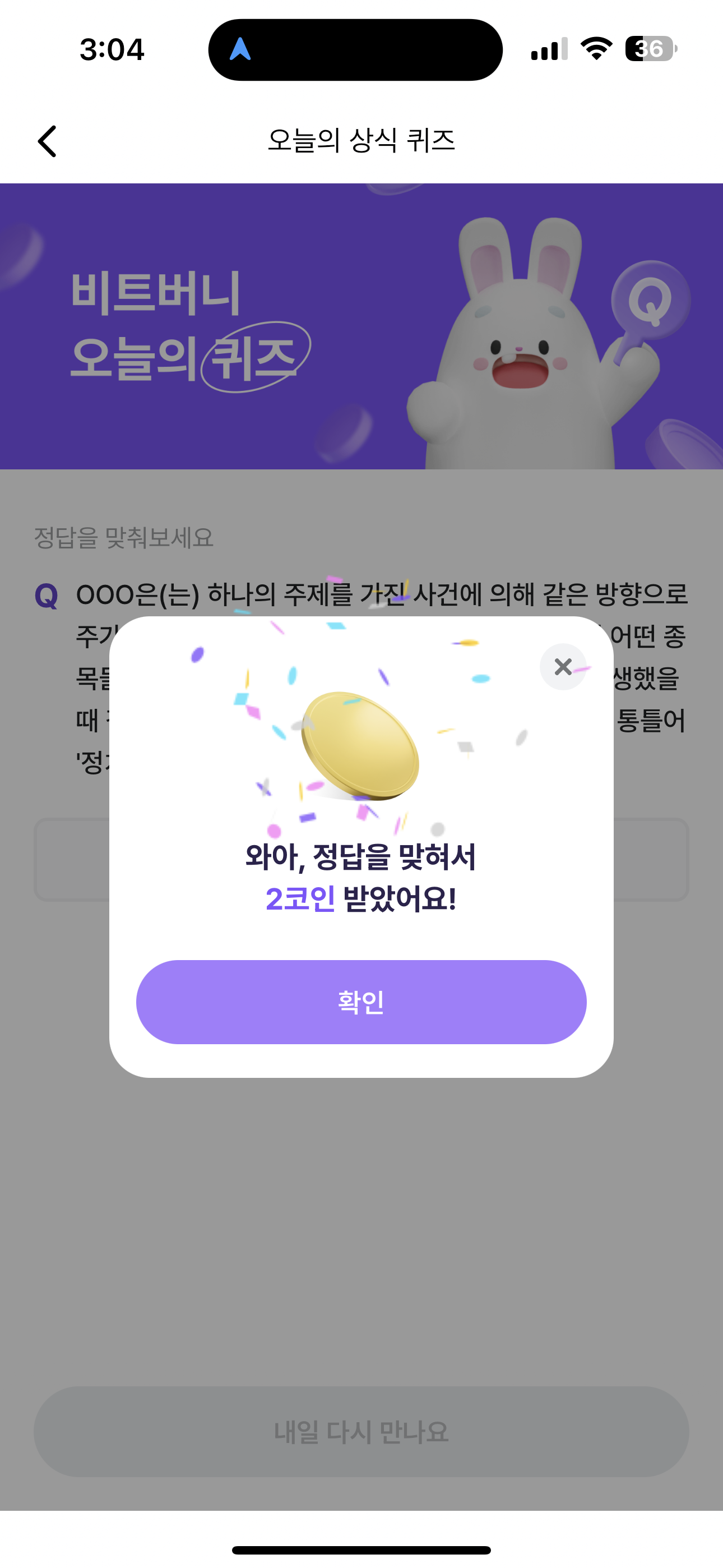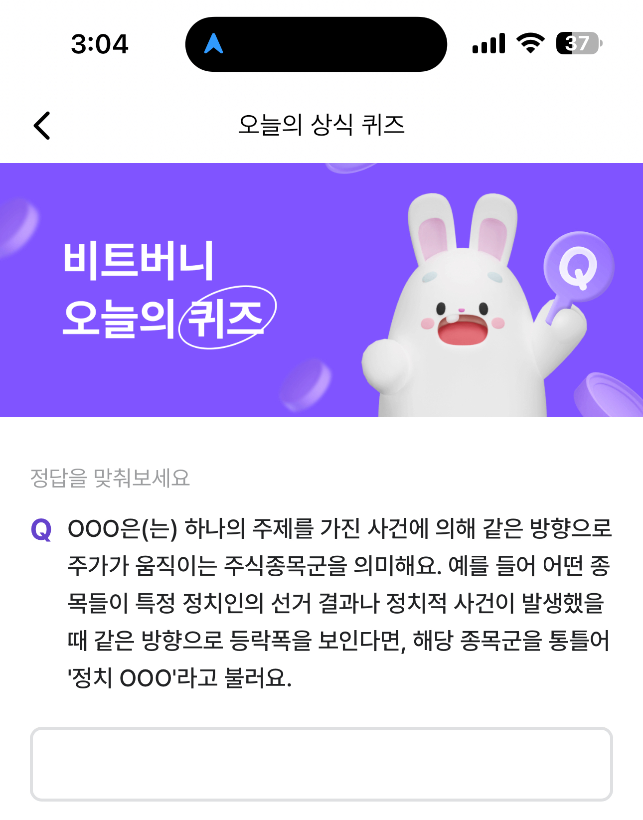 비트버니 오늘의 퀴즈 정답은 테마주 입니다