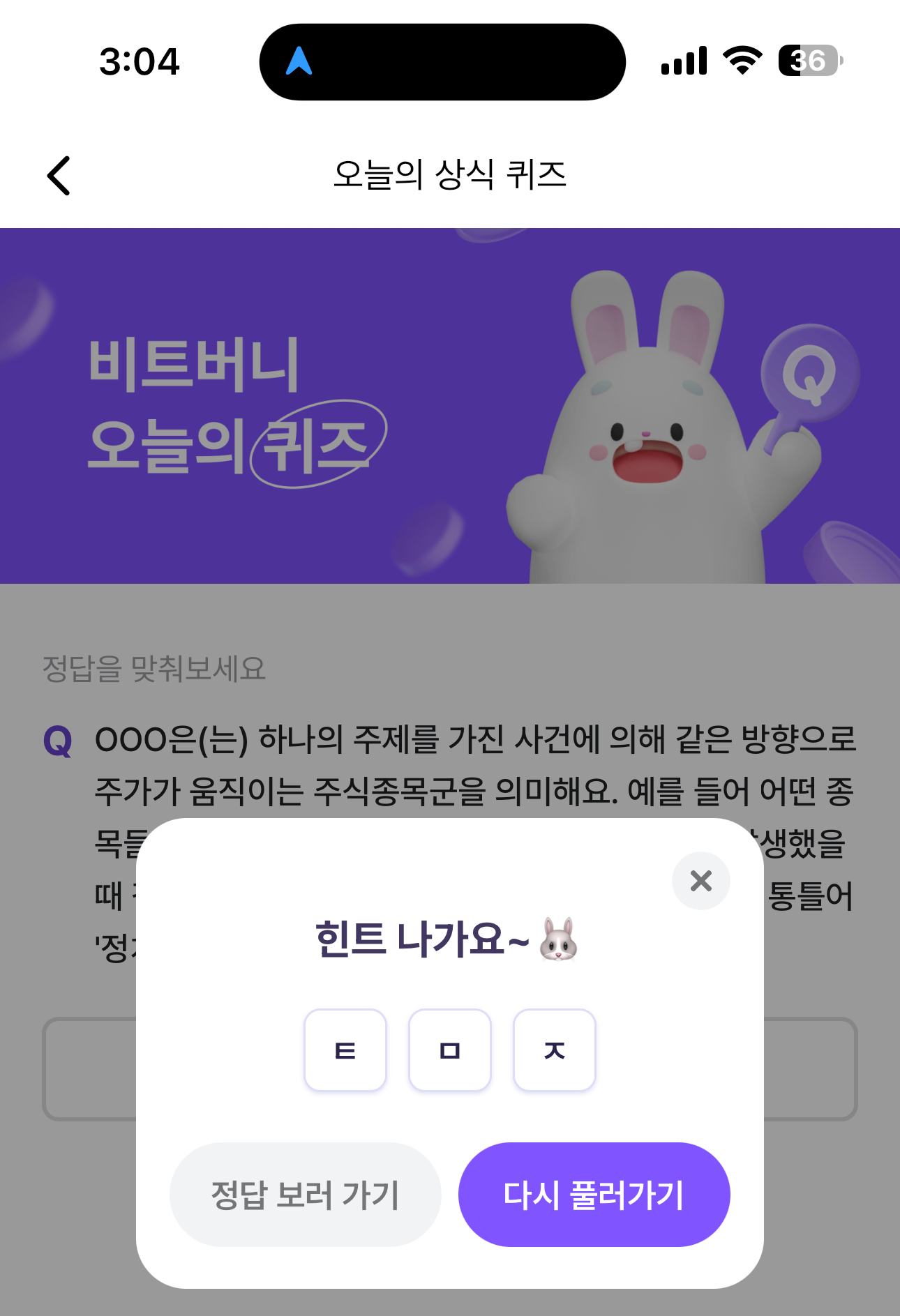 비트버니 오늘의 퀴즈 정답은 테마주 입니다
