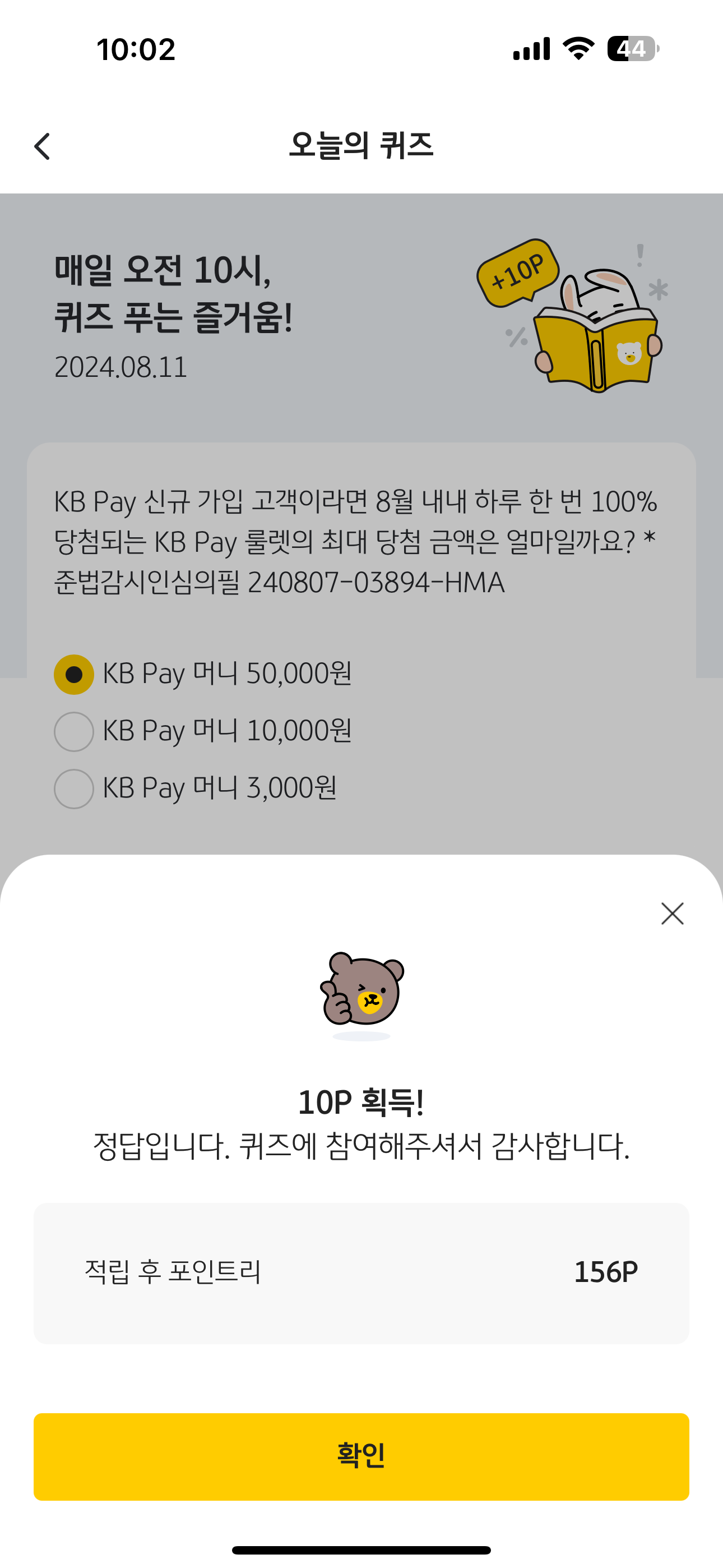 10P를 받았습니다. 포인트는 현금 전환 가능하니 꼭 받으시고요. 여러분의 재테크를 응원합니다