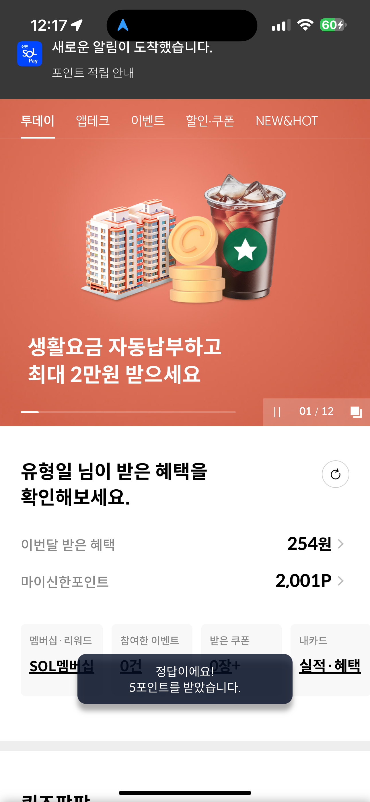 5포인트를 받았습니다. 포인트는 현금 전환 가능하니 꼭 받으시고요. 여러분의 재테크를 응원합니다