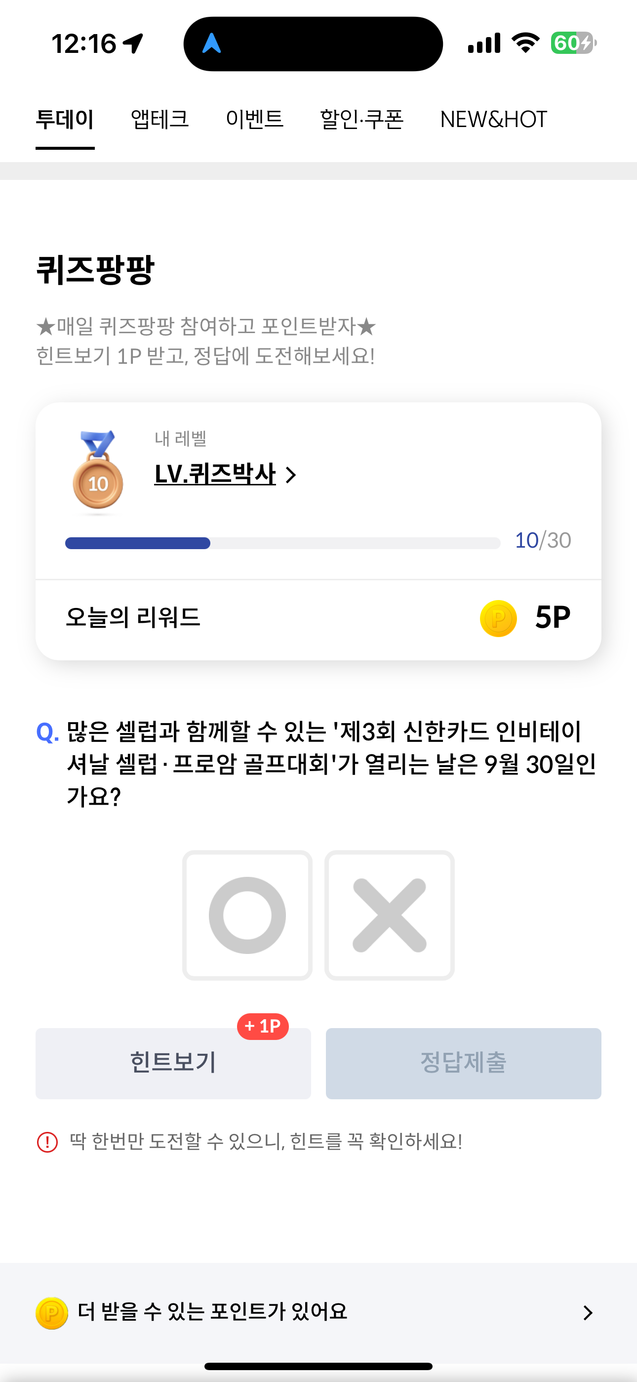 신한카드 퀴즈팡팡 정답은 O 입니다