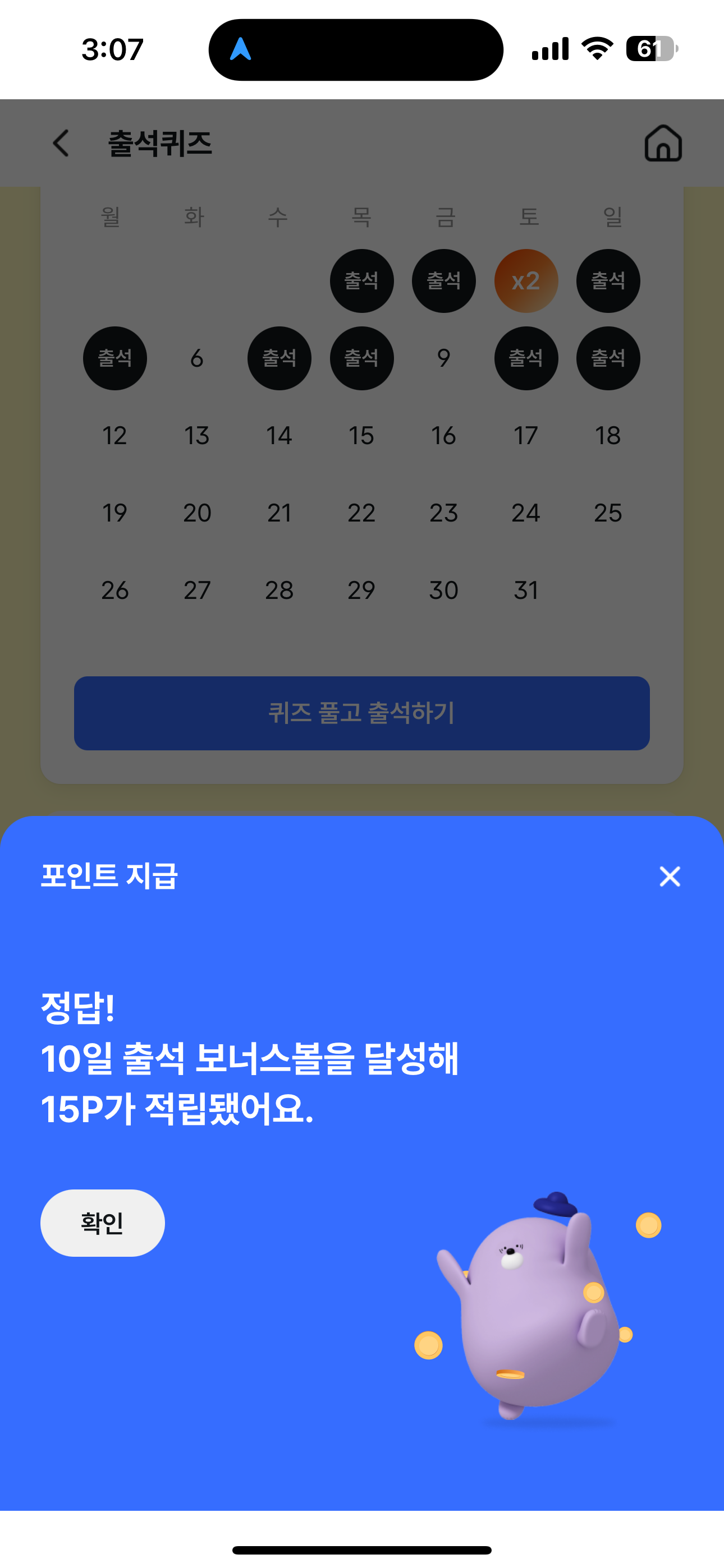 15P를 받았습니다. 포인트는 현금 전환 가능하니 꼭 받으시고요. 여러분의 재테크를 응원합니다