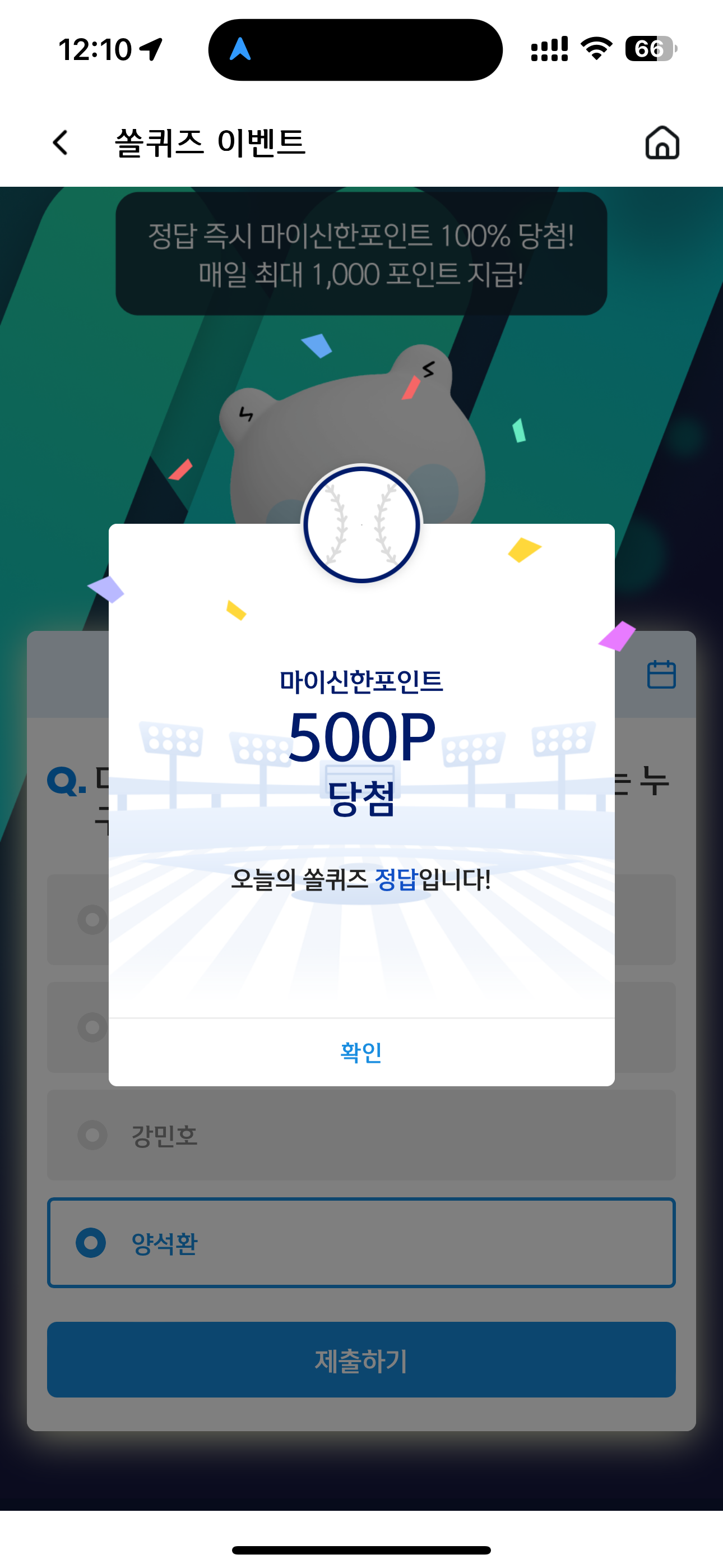 신한 슈퍼SOL 야구/상식 쏠퀴즈 정답은 양석환 입니다