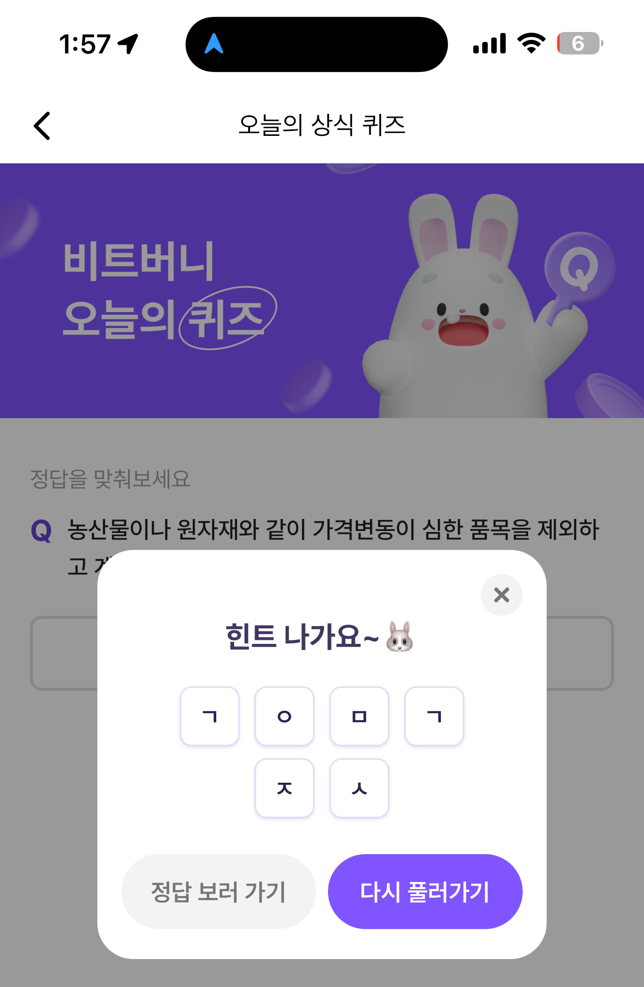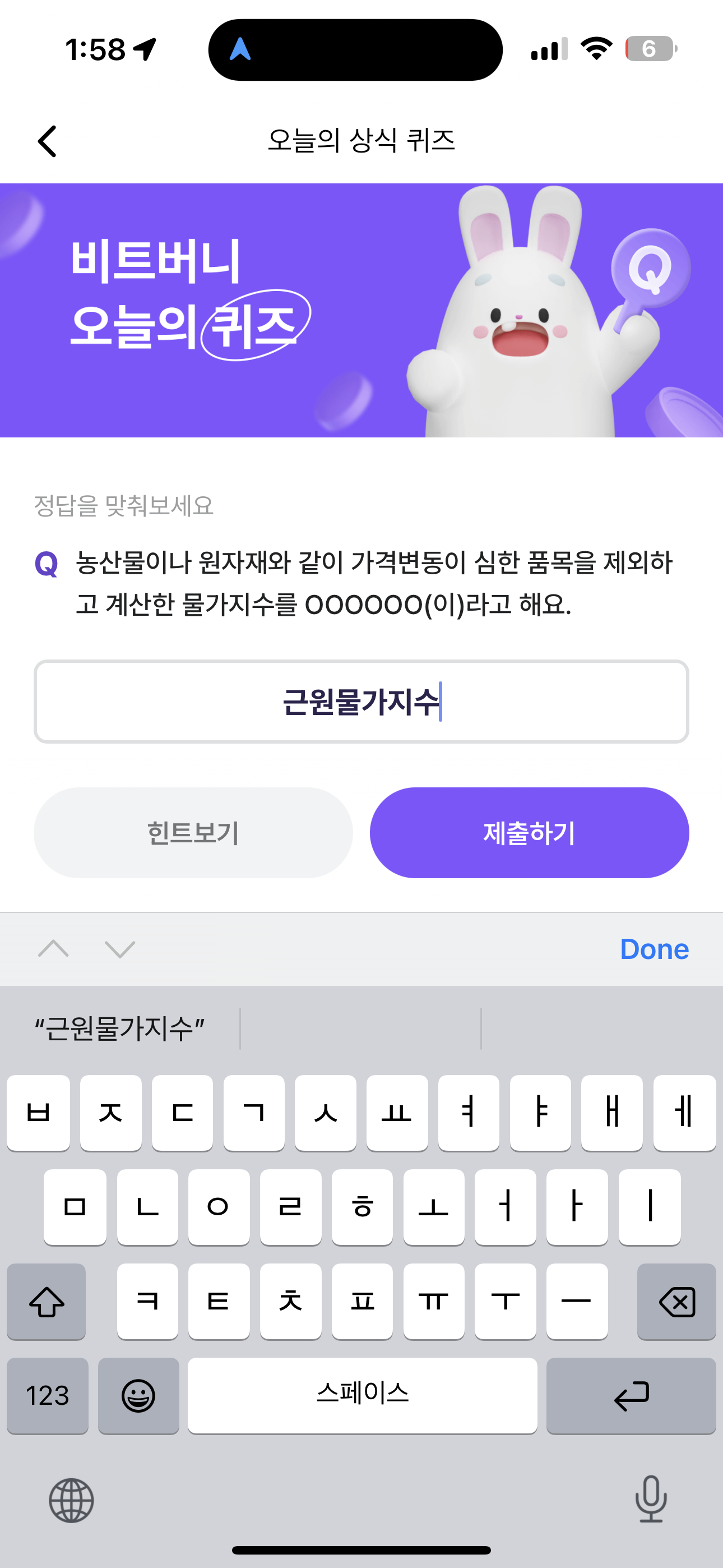 비트버니 오늘의 퀴즈 8월 13일 ㄱㅇㅁㄱㅈㅅ 정답(농산물이나 원자재와 같이 가격변동이 심한 품목을 제외하고 계산한 물가지수를 OOOOOO(이)라고 해요.)