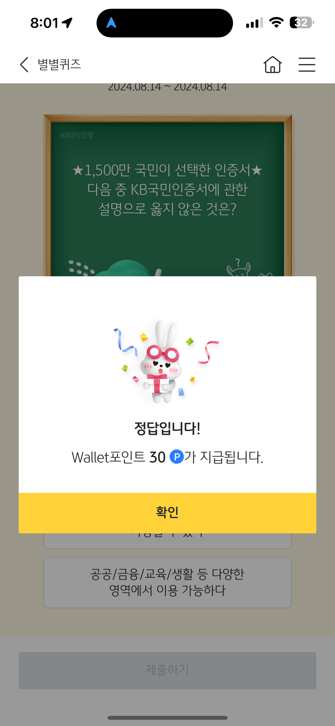KB스타뱅킹 별별퀴즈 8월 14일 문제입니다