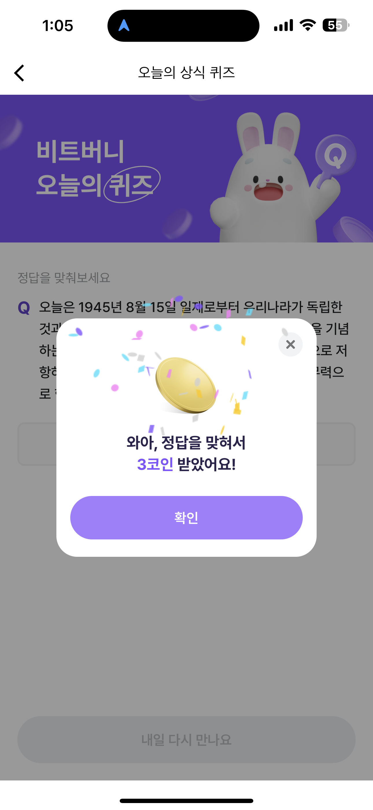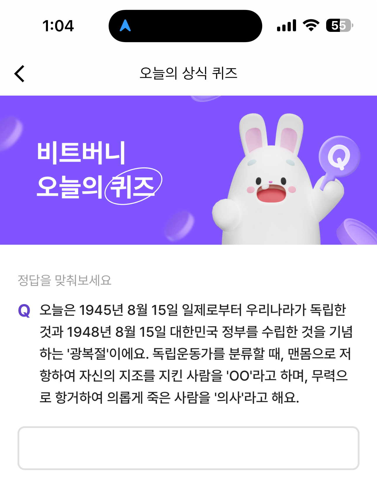 비트버니 오늘의 퀴즈 정답은 열사 입니다