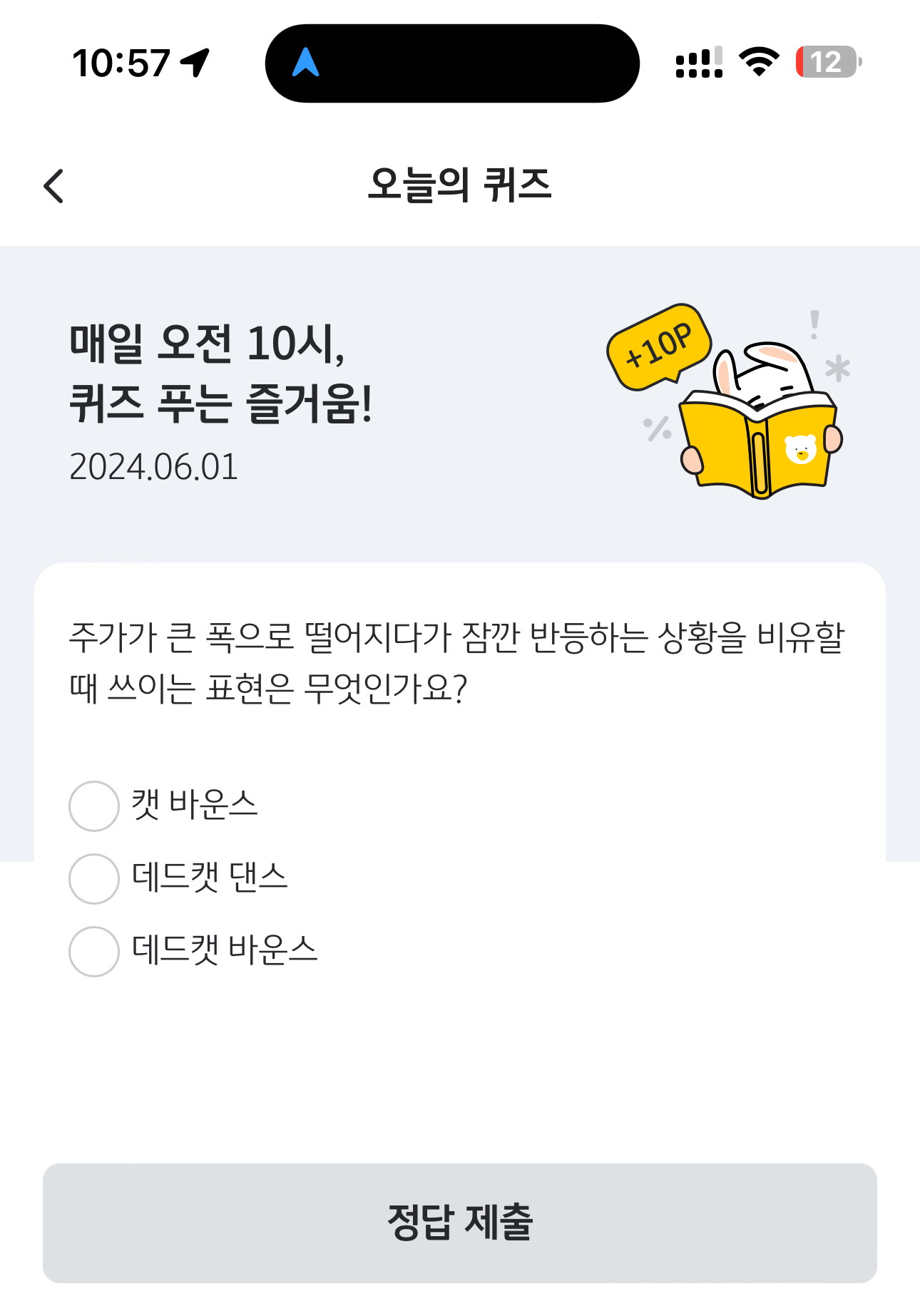 KB Pay 오늘의 퀴즈 정답은 데드캣 바운스 입니다