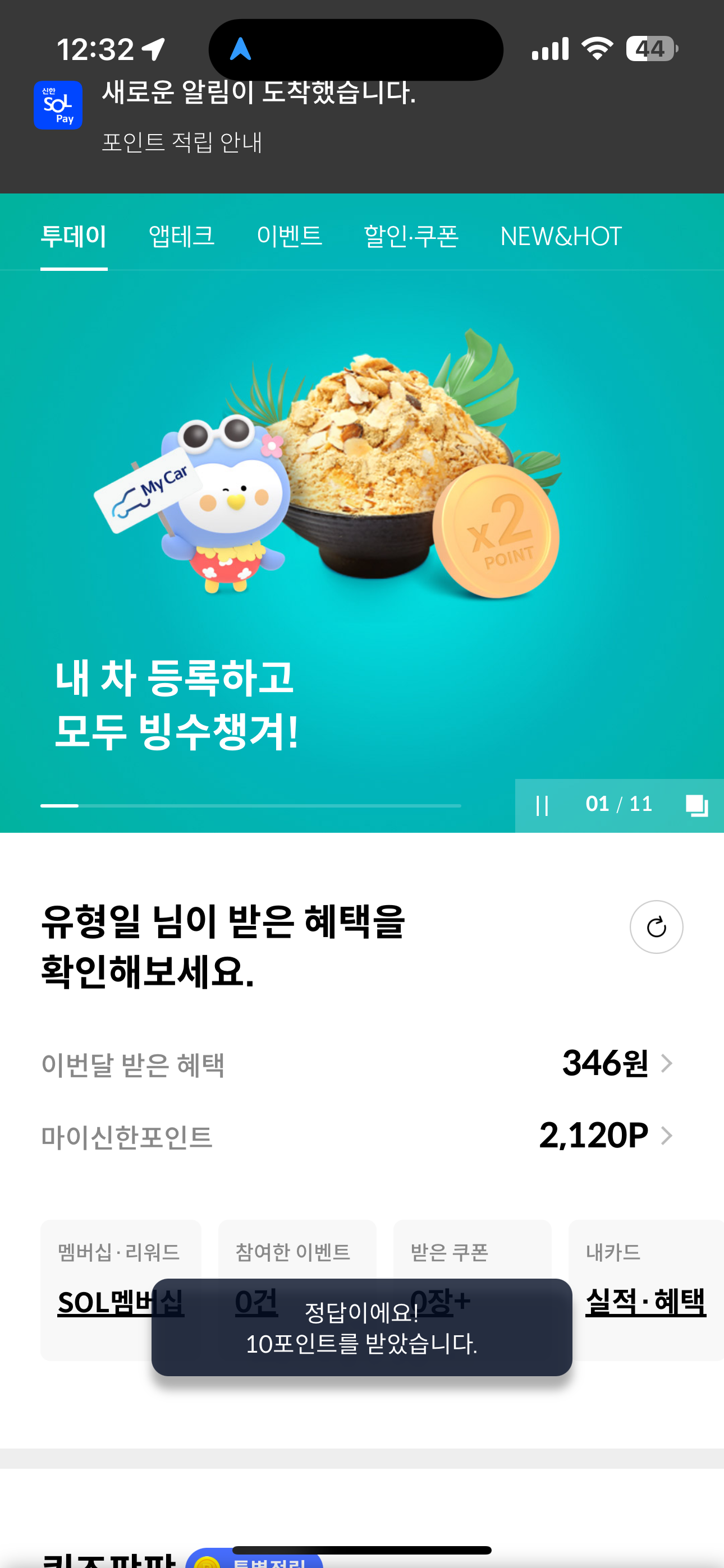 10포인트를 받았습니다. 포인트는 현금 전환 가능하니 꼭 받으시고요. 여러분의 재테크를 응원합니다