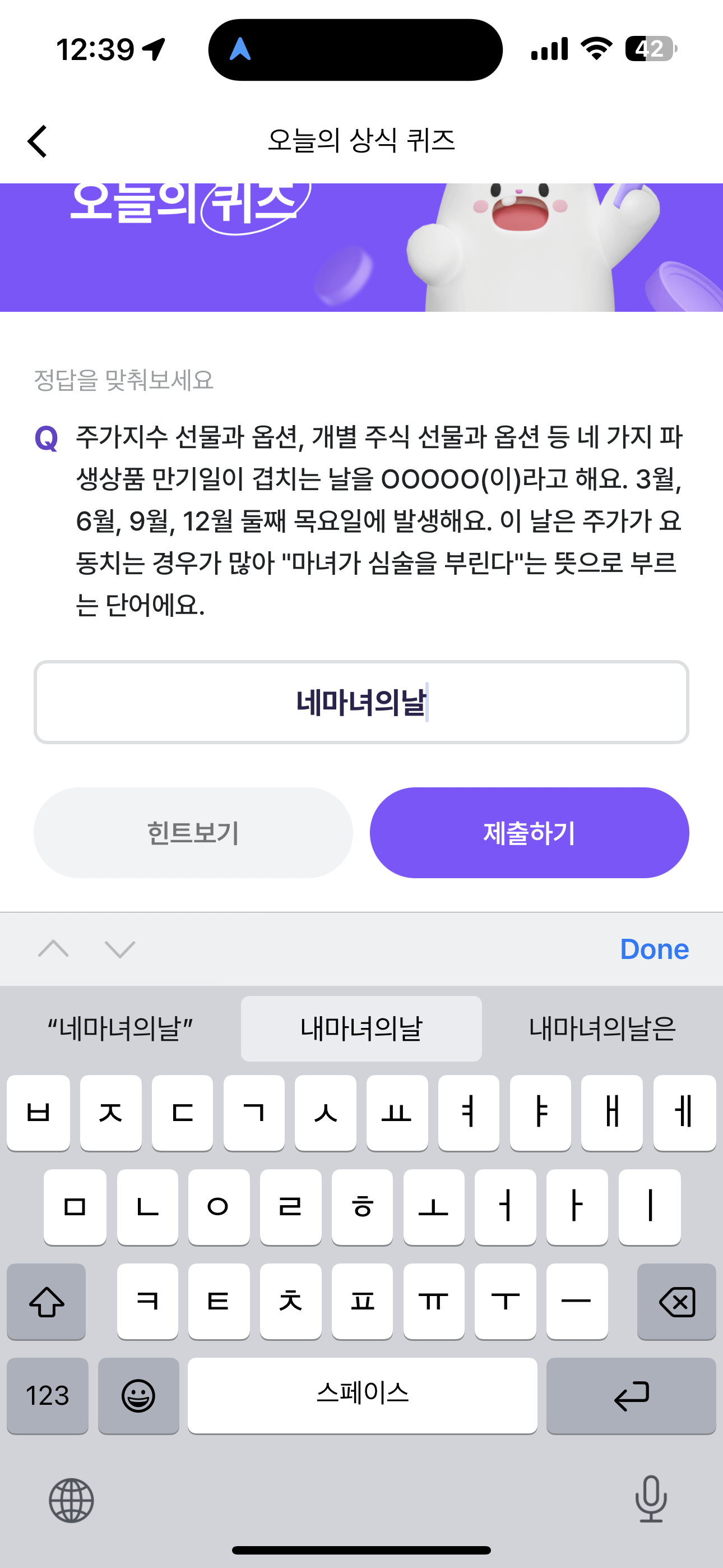 비트버니 오늘의 퀴즈 초성 힌트는 ㄴㅁㄴㅇㄴ 입니다.