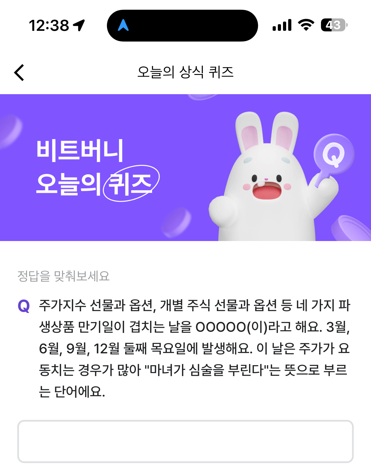 비트버니 오늘의 퀴즈 정답은 네마녀의날 입니다
