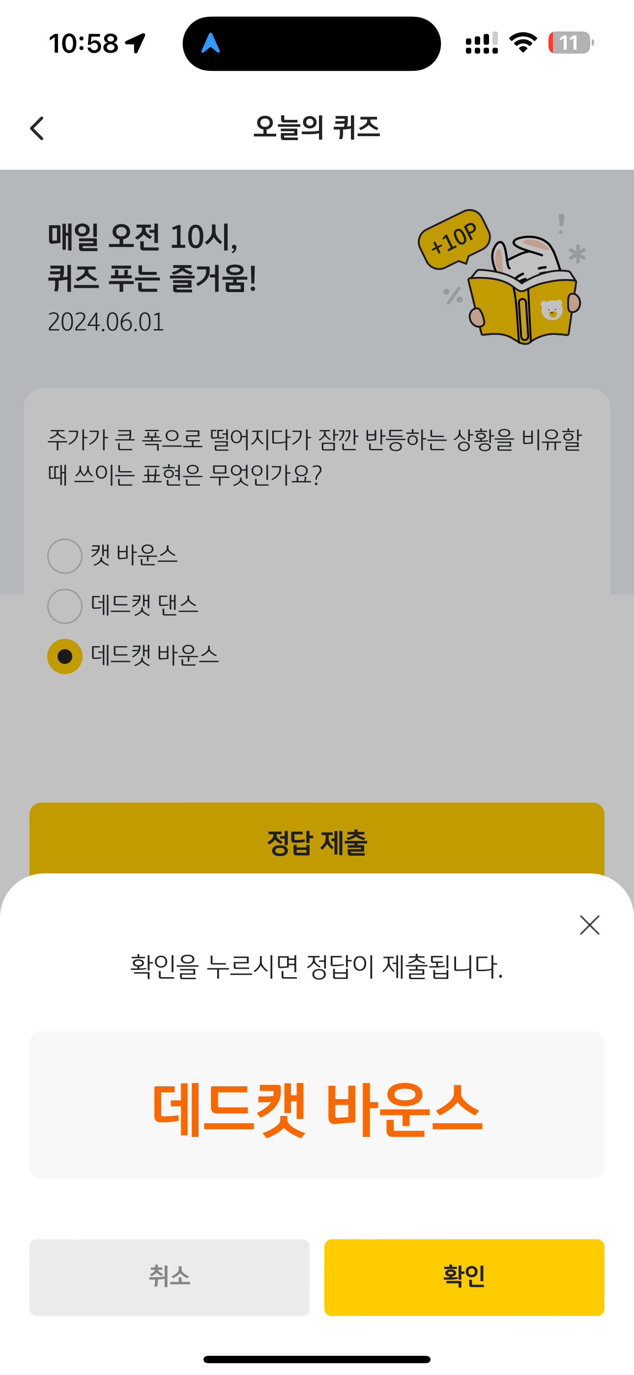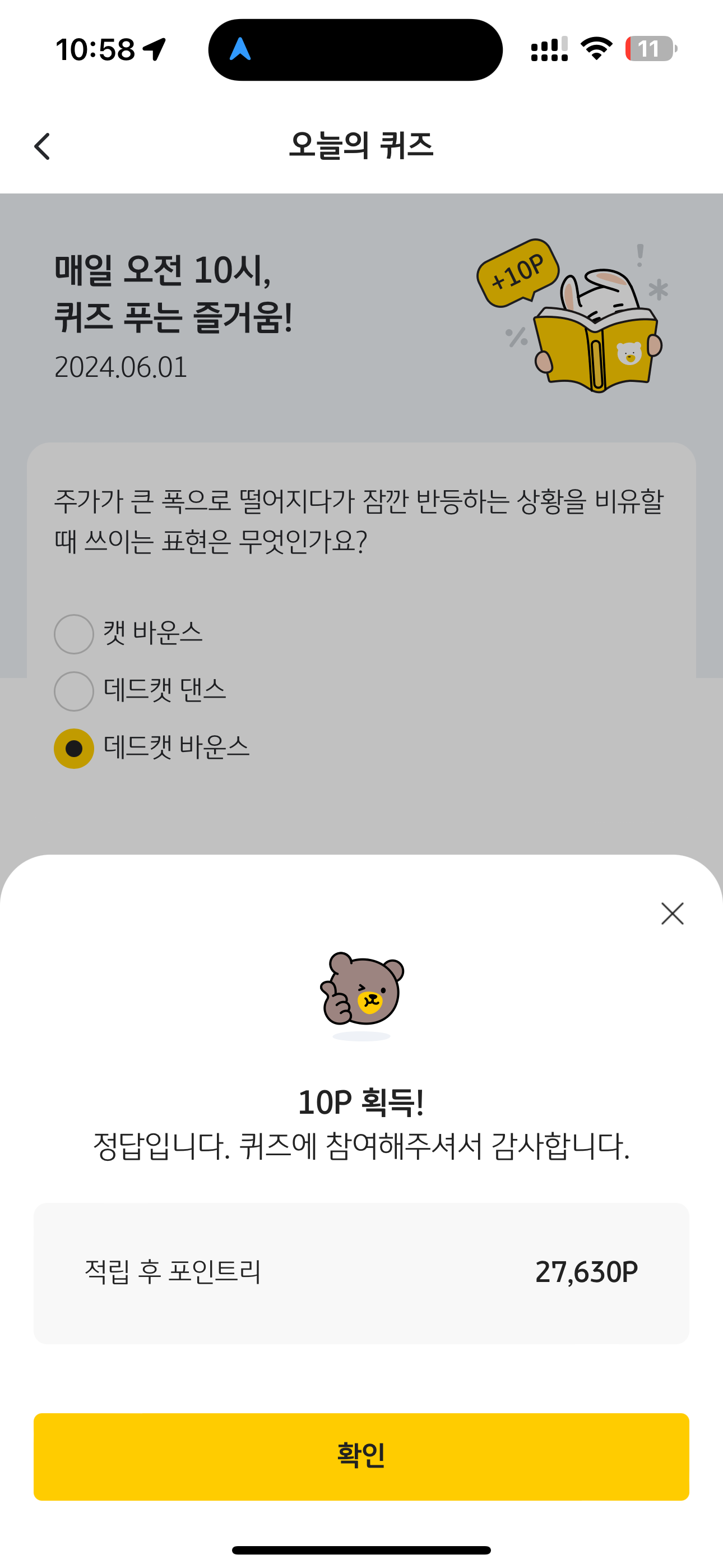 KB Pay 오늘의 퀴즈 정답은 데드캣 바운스 입니다