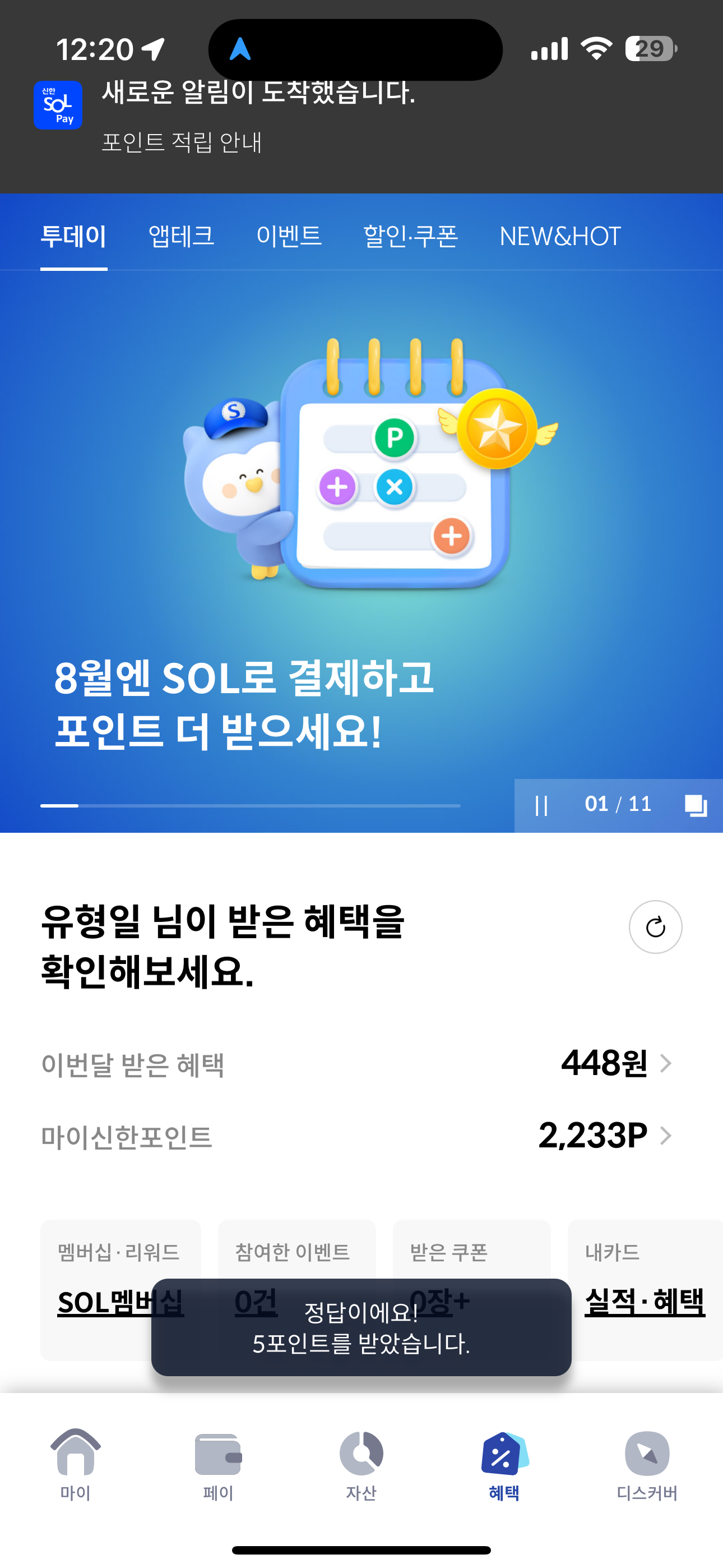 5포인트를 받았습니다. 포인트는 현금 전환 가능하니 꼭 받으시고요. 여러분의 재테크를 응원합니다