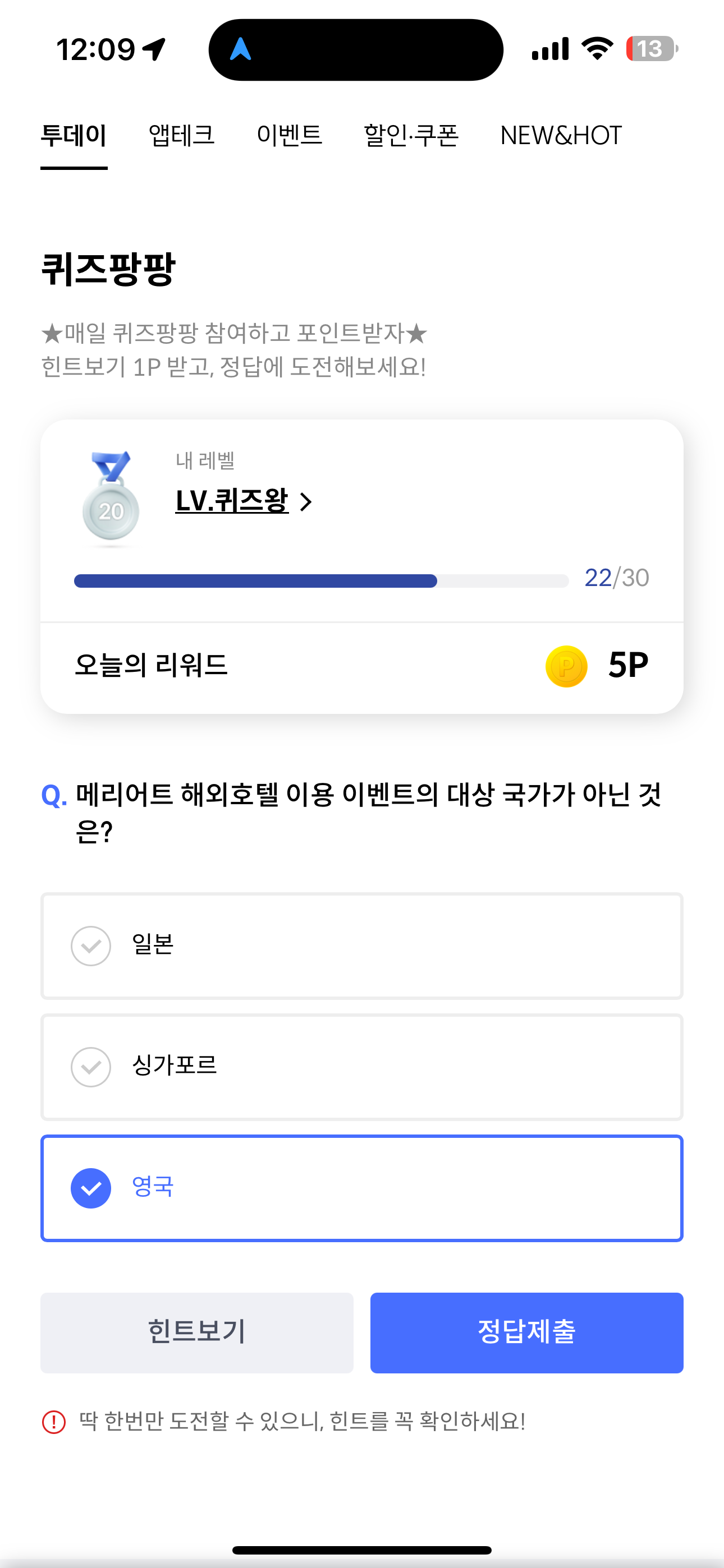 신한카드 퀴즈팡팡 정답은 영국 입니다