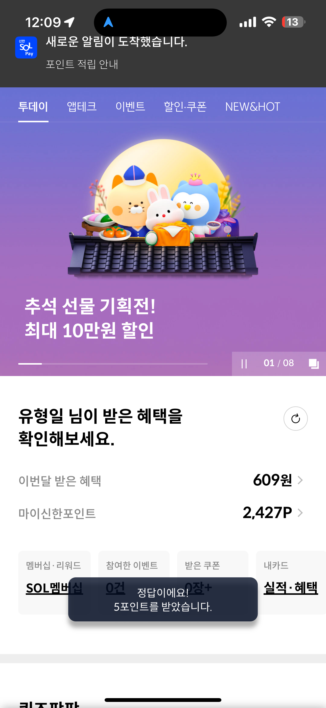 5포인트를 받았습니다. 포인트는 현금 전환 가능하니 꼭 받으시고요. 여러분의 재테크를 응원합니다