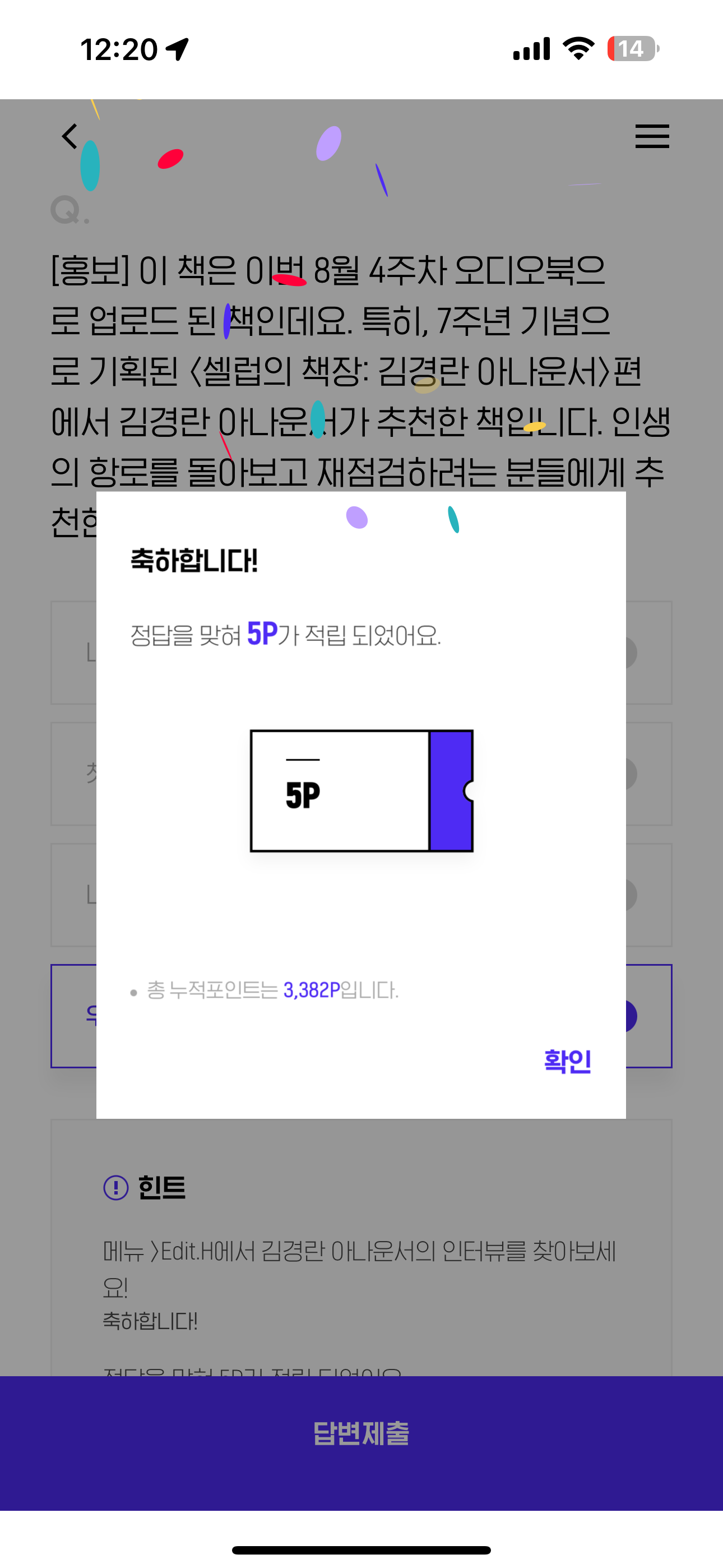 [홍보] 이 책은 이번 8월 4주차 오디오북으로 업로드 된 책인데요. 특히, 7주년 기념으로 기획된 <셀럽의 책장: 김경란 아나운서>편에서 김경란 아나운서가 추천한 책입니다. 인생의 항로를 돌아보고 재점검하려는 분들에게 추천한 이 책의 제목은 무엇일까요? 보기는 1. 내 모든 습관은 여행에서 만들어졌다 2. 첫 마디를 행운에 맡기지 마라 3. 나, 있는 그대로 참 좋다 4. 우아하게, 고독하게, 행복하게