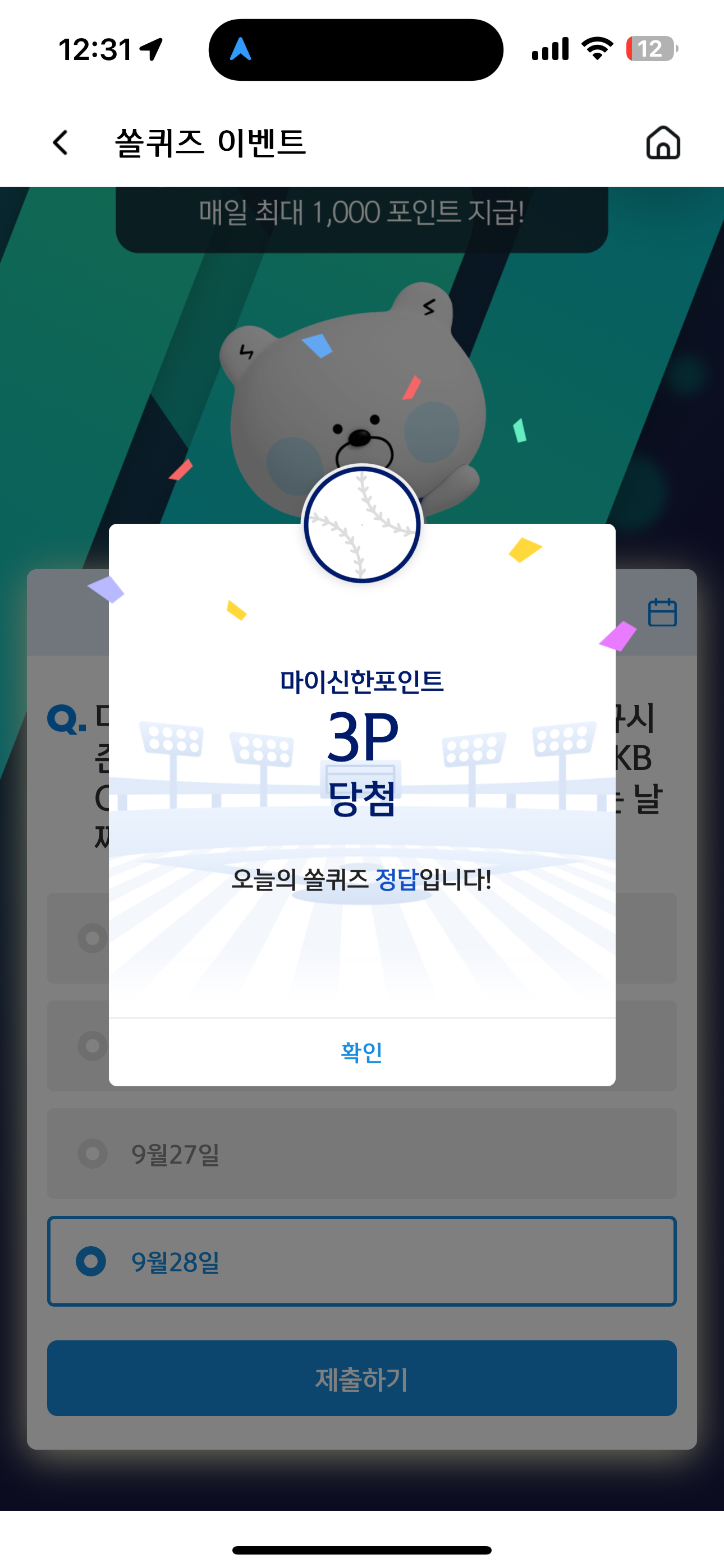 신한 슈퍼SOL 야구/상식 쏠퀴즈 정답은 9월 28일 입니다