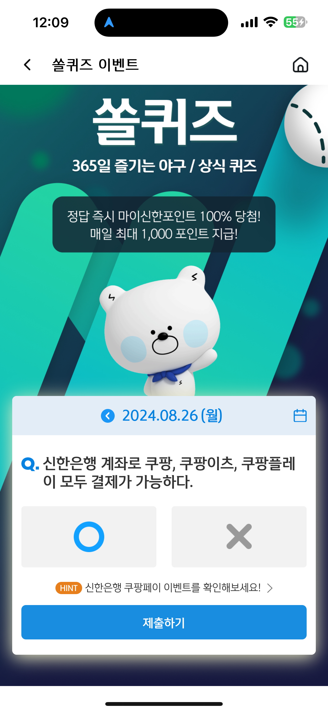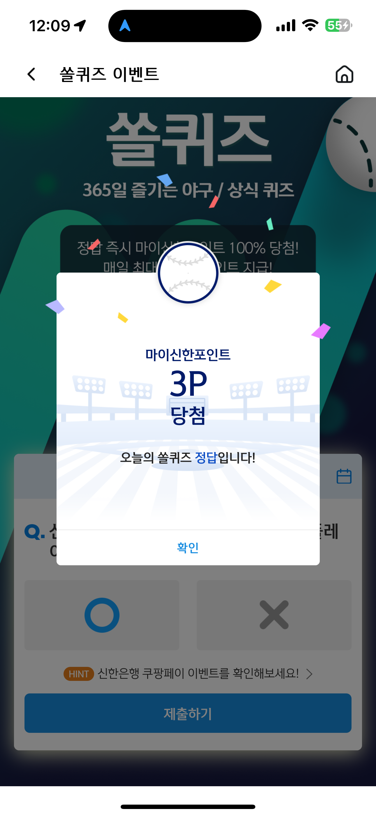 신한 슈퍼SOL 야구/상식 쏠퀴즈 정답은 O 입니다