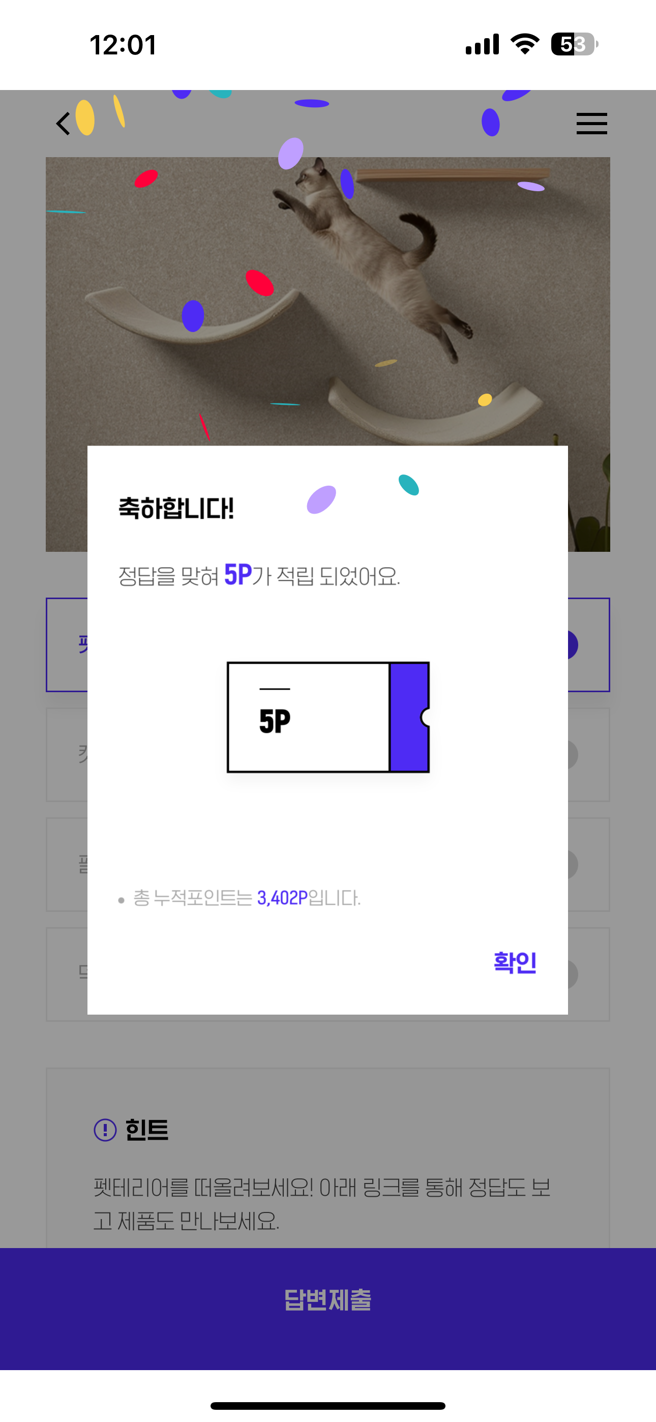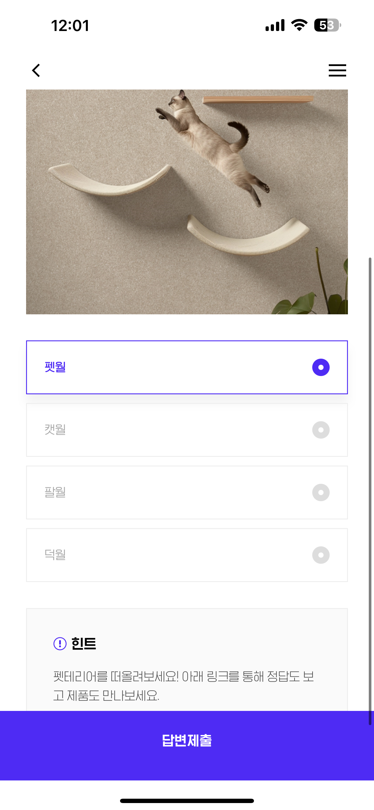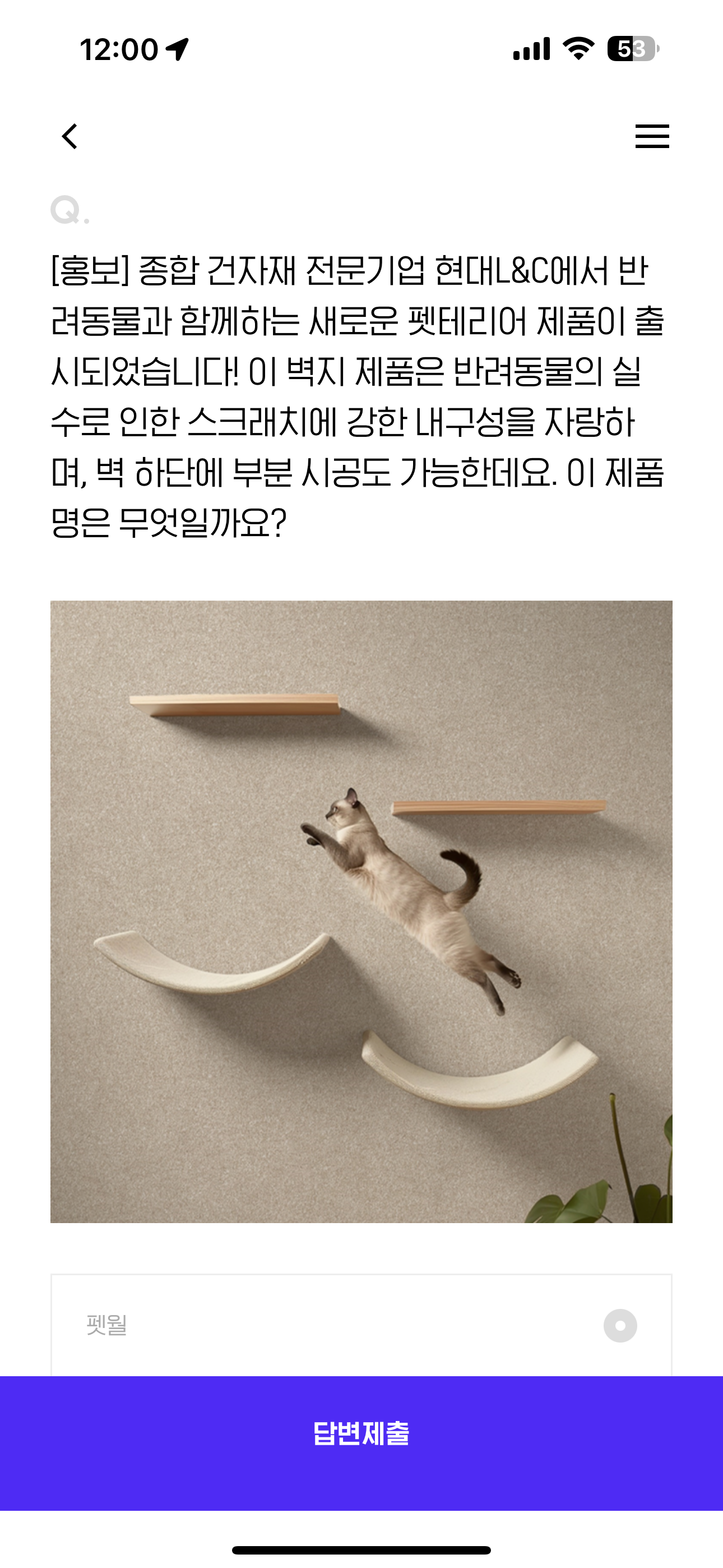 H포인트 퀴즈 정답은 펫월입니다