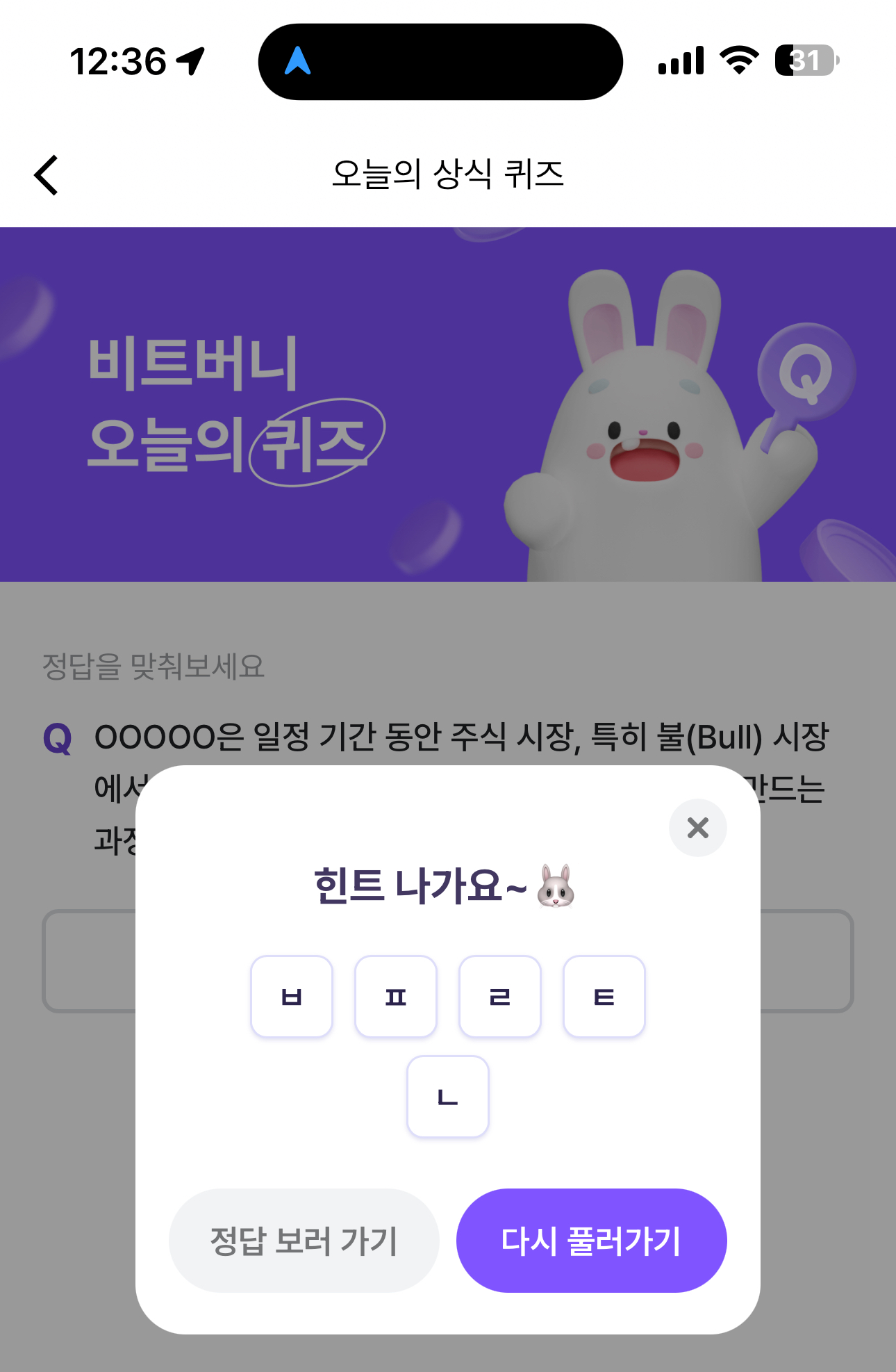 비트버니 오늘의 퀴즈 초성 힌트는 ㅂㅍㄹㅌㄴ 입니다