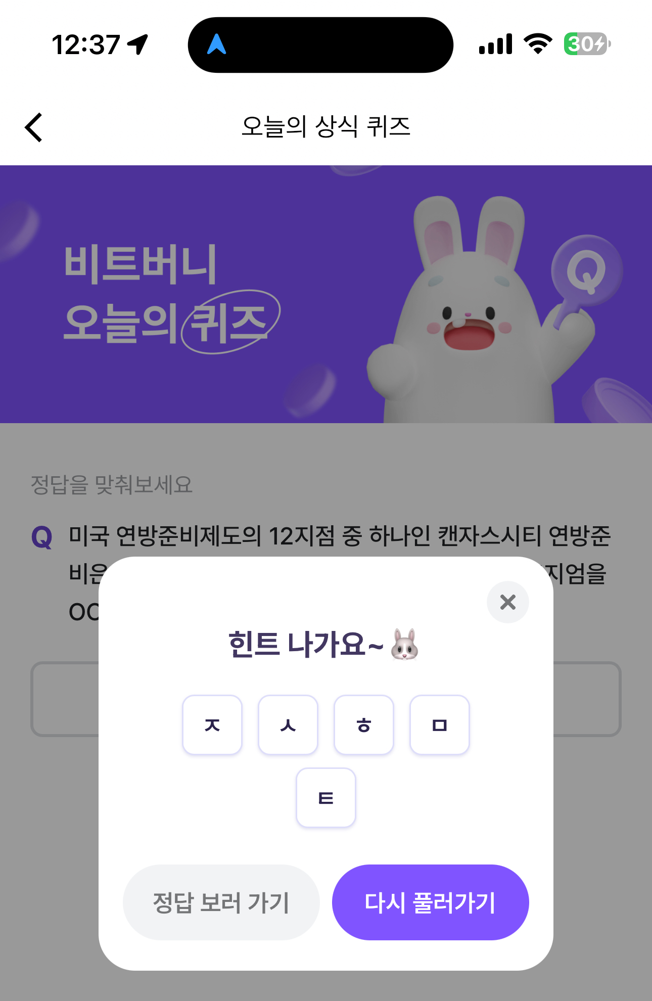 비트버니 오늘의 퀴즈 초성 힌트는 ㅈㅅㅎㅁㅌ 입니다.
