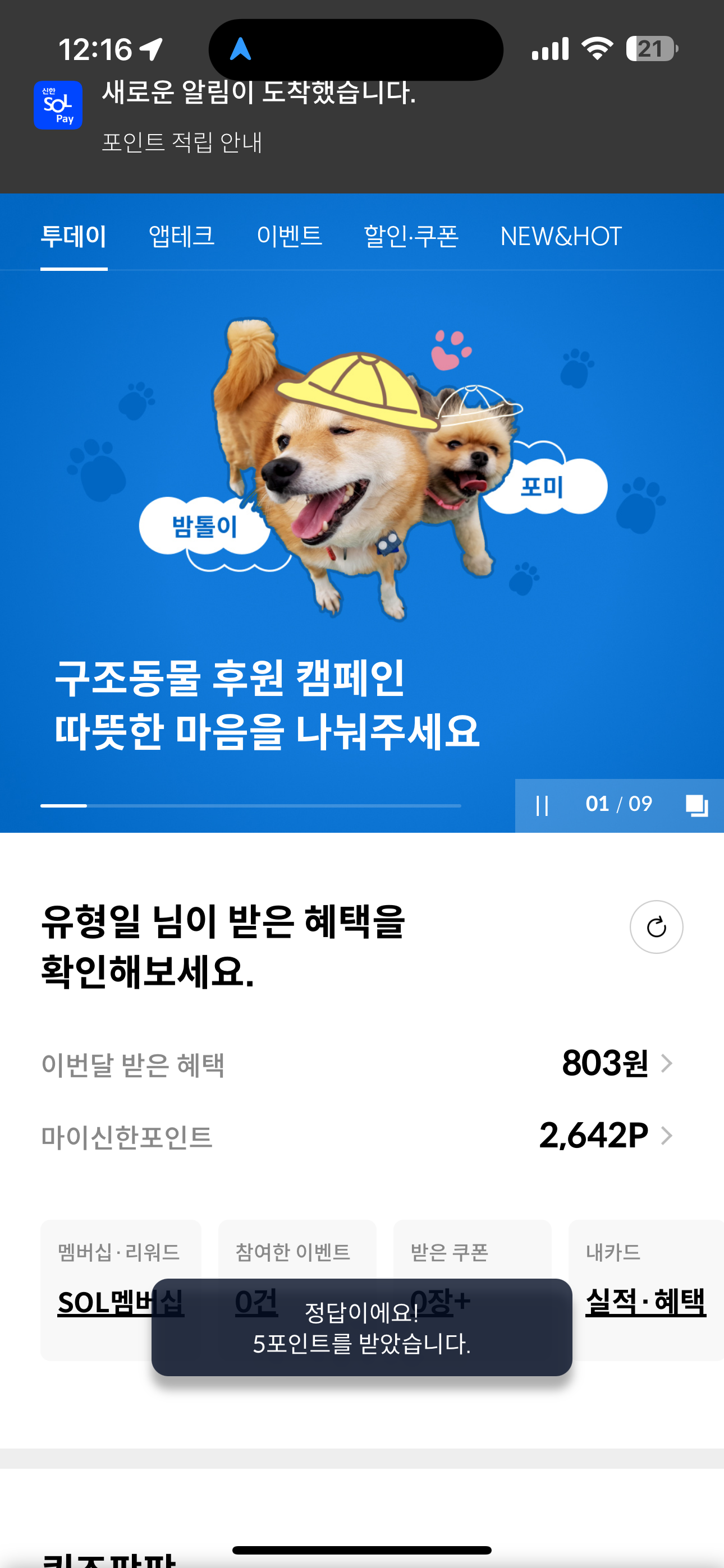 5포인트를 받았습니다. 포인트는 현금 전환 가능하니 꼭 받으시고요. 여러분의 재테크를 응원합니다