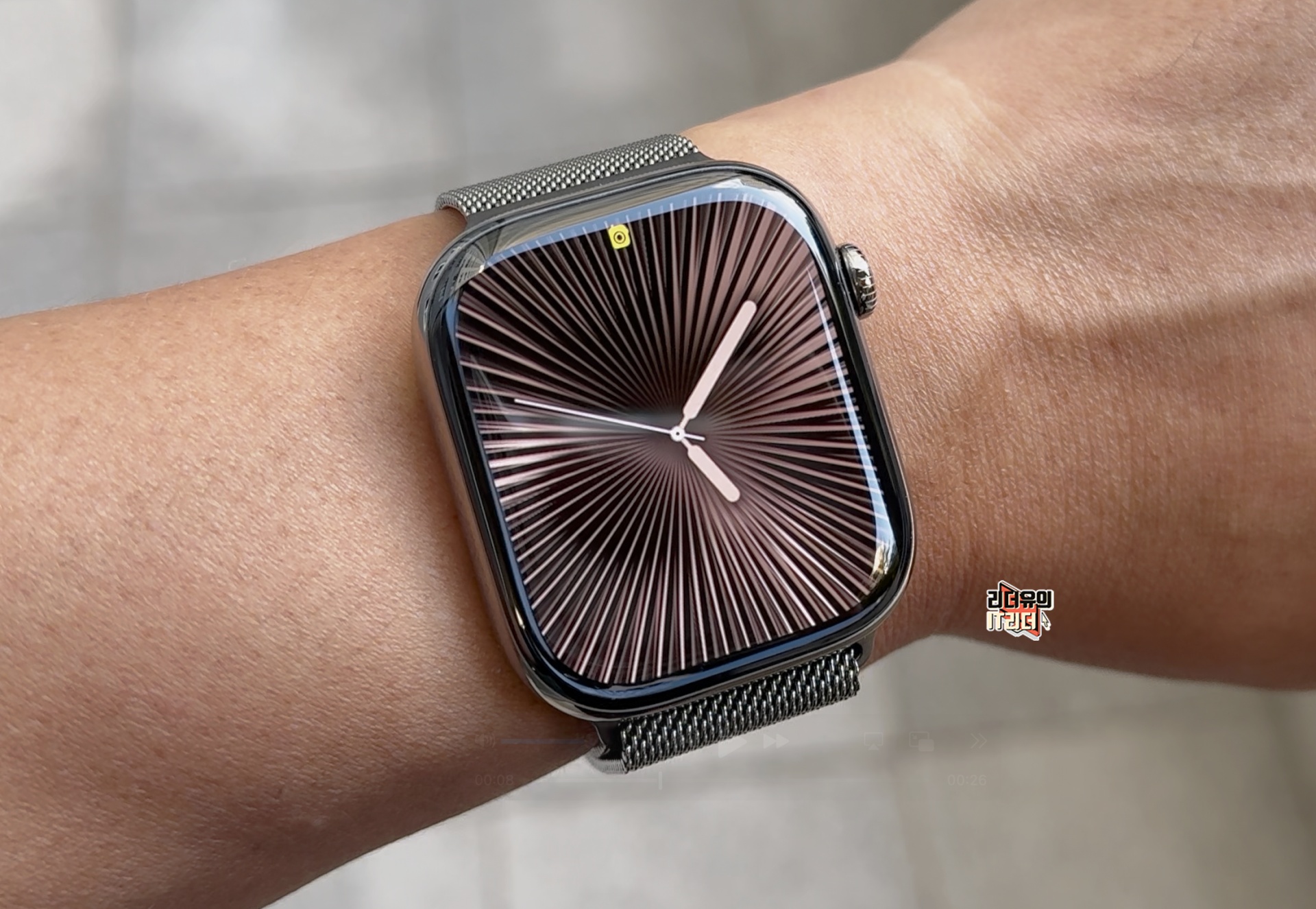 애플워치10 티타늄을 돋보이게 해주는 잔상 워치페이스를 적용한 모습입니다. 밀레니즈 루프 스트랩(밴드)까지 완벽한 조합을 보여주고 있습니다.