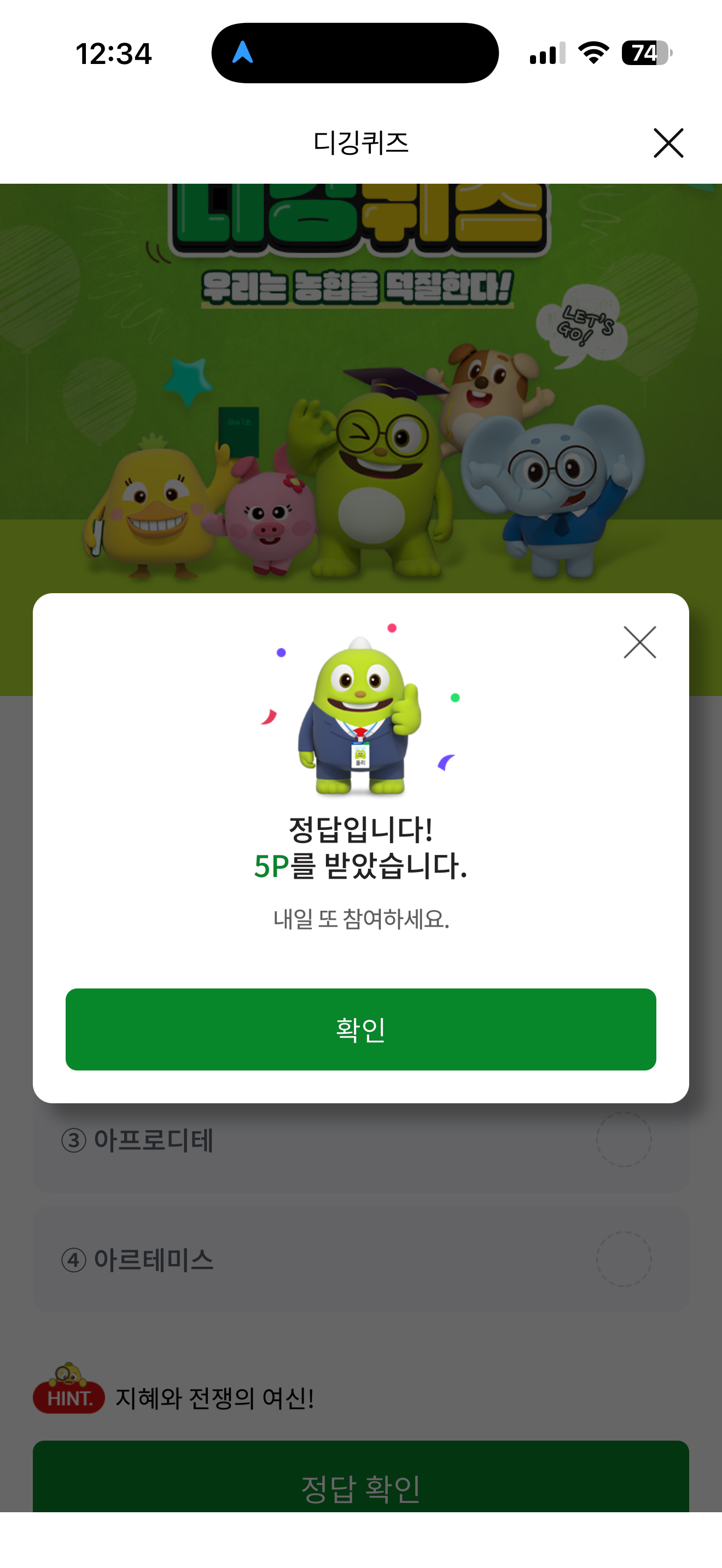 NH올원뱅크 디깅퀴즈 정답은 아테나 입니다