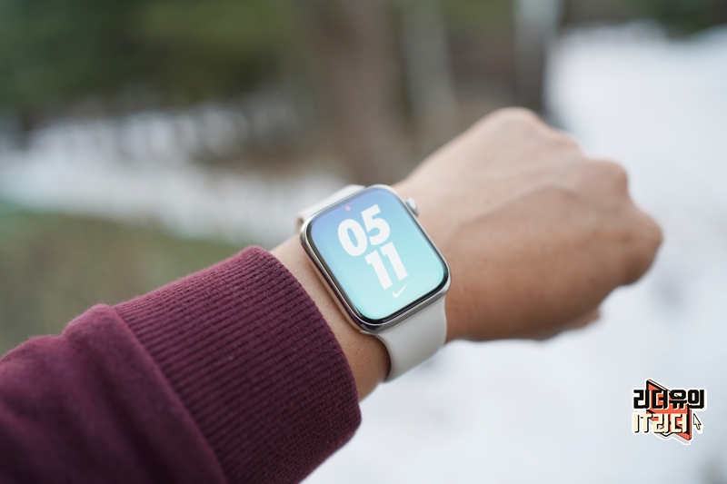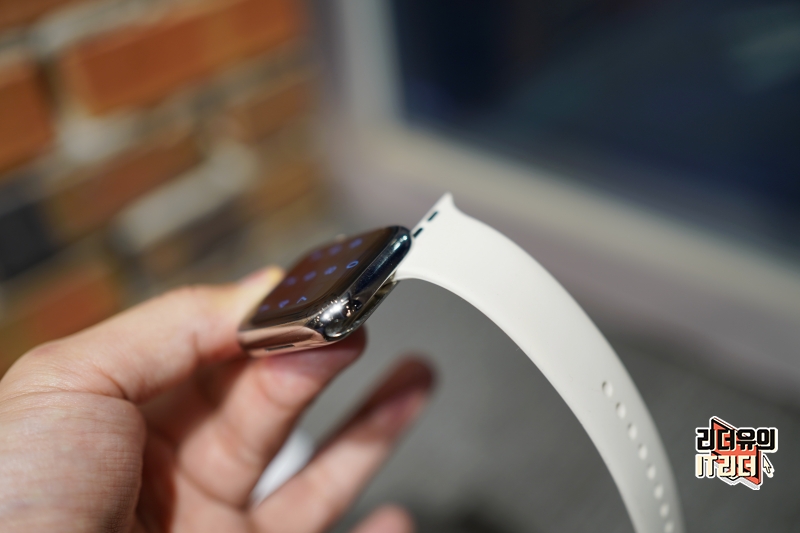 애플워치8 스테인리스 스틸 실버와 다이소 애플워치 실리콘 밴드 조합은 사실상 정품이라 봐도 될 정도로 완벽한 핏감을 느낄 수 있습니다.
