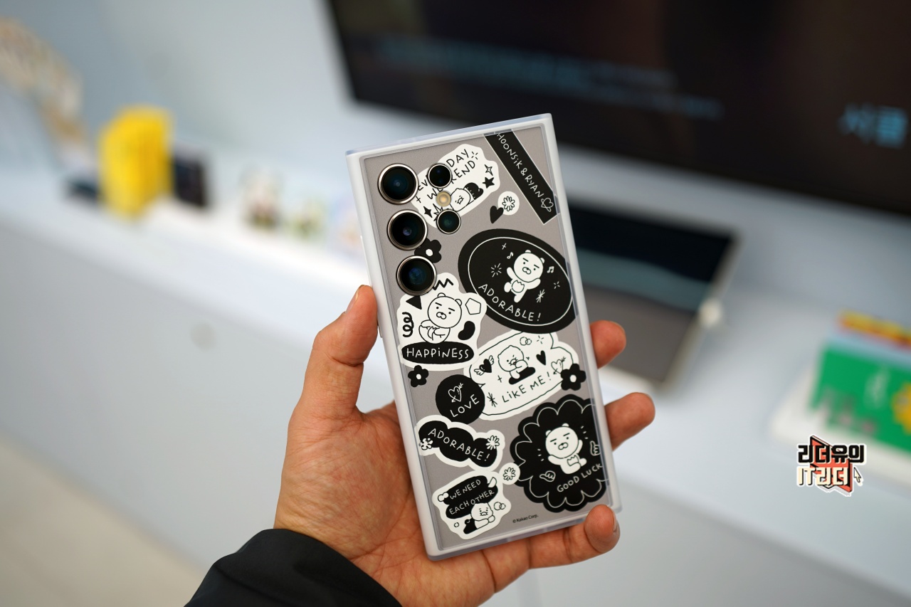 삼성 갤럭시S24 울트라 카카오프렌즈 플립수트 케이스를 장착한 모습입니다. 잠금 화면까지 카카오 캐릭터로 변경이 되어 통일감있는 디자인을 볼 수 있습니다. 참고로 뒤에 플립수트 카드만 별도 판매하는데요. 잠금 화면 테마는 플립수트 카드와 함께 나오는 것이라 플립수트 카드를 변경하면 사용이 불가능하니 참고하세요. 그리고 플립수트 케이스는 갤럭시S24 시리즈도 다 준비되어 있습니다. 삼성 갤럭시S24 케이스 추천합니다.