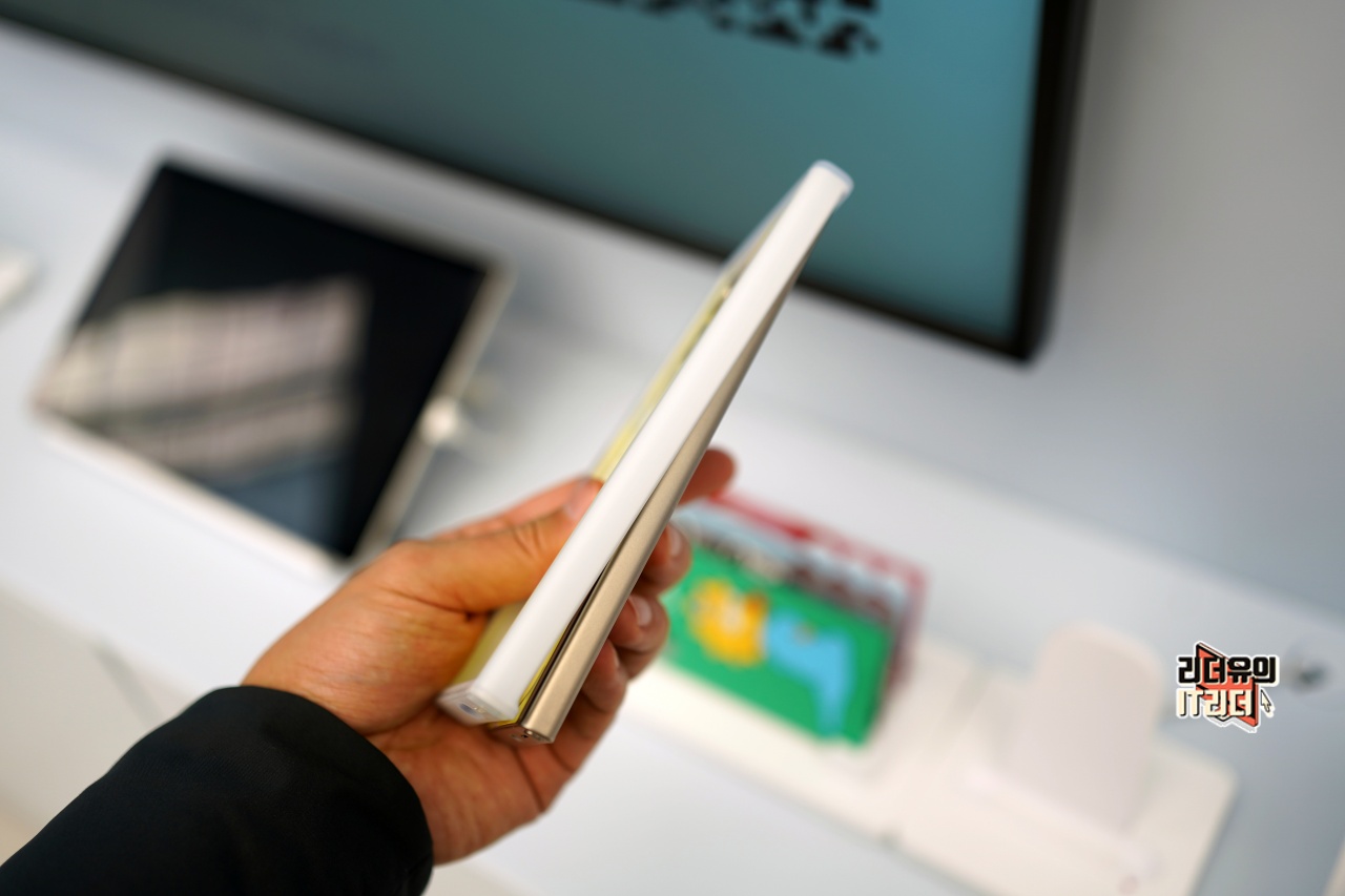 테두리 프레임은 범퍼 케이스 형태로 하얀색의 프레임을 가지고 있습니다.