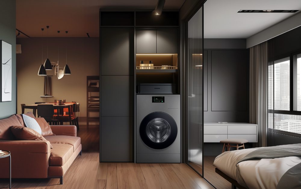 삼성전자 올인원 세탁건조기 비스포크 AI 콤보는 세탁기, 건조기 각각 설치하는 제품에 비해 약 40% 공간 절약 효과를 누릴 수 있습니다. 그냥 일반적인 세탁기를 하나 둔 거라 보면 됩니다.