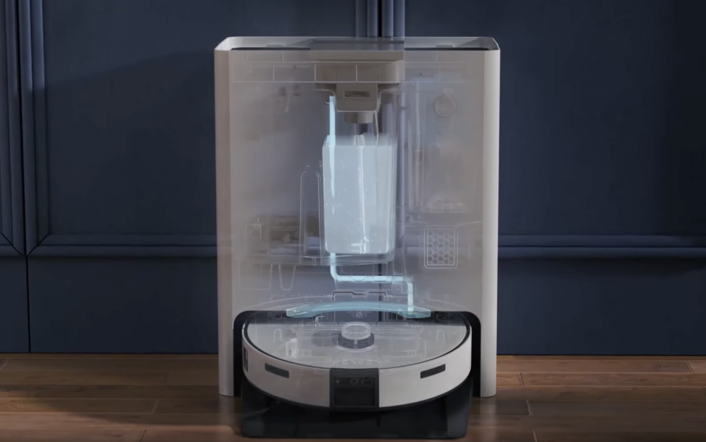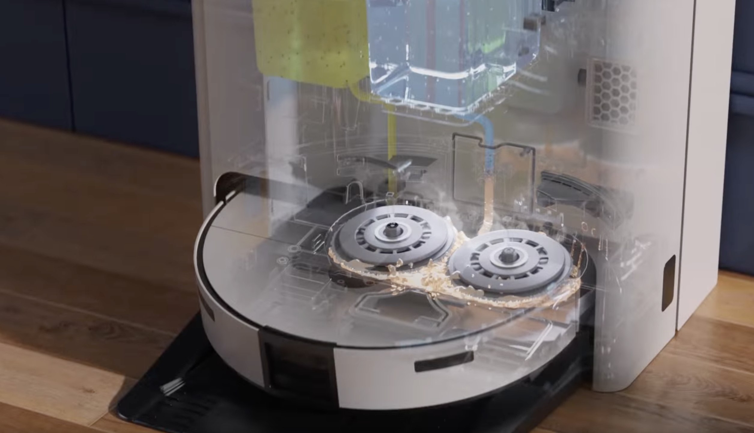 물걸레를 1차로 고온의 스팀과 물로 자동 세척한 뒤 2차로 100℃ 스팀 살균을 통해 물걸레의 대장균 등 각종 세균을 99.99% 없애주는 것이 특징입니다. 그리고 청소를 마친 후 55℃의 열풍건조로 물걸레를 말려주는 역할도 합니다.