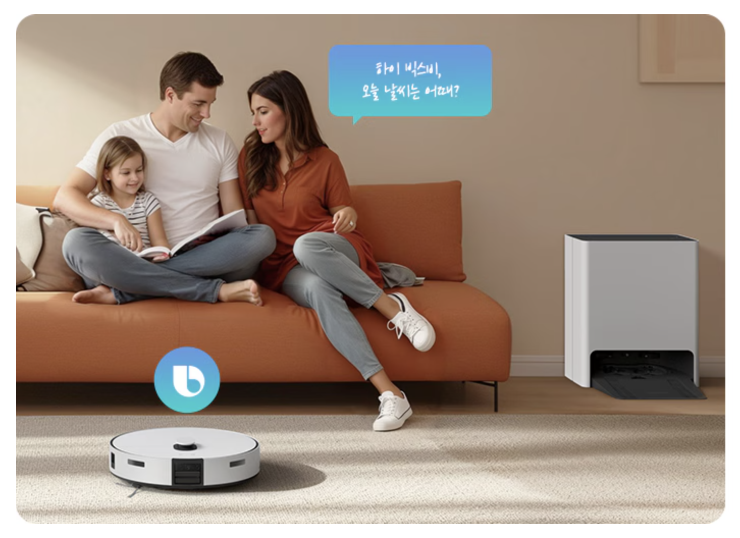 삼성 비스포크 AI 스팀 로봇청소기는 빅스비 음성 컨트롤을 지원해 음성으로 다양한 기능 컨트롤이 가능합니다. 예약 청소도 음성으로 편하게 할 수 있습니다.