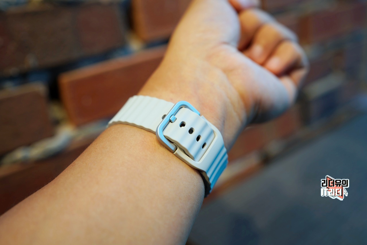 갤럭시워치7 스트랩은 웨이브 라인이 들어간 유니크한 디자인을 느낄 수 있고